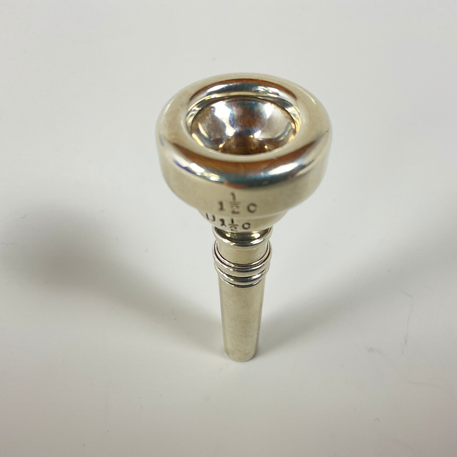 Used Bach Corp. 1 1/2C cornet mouthpiece in silver plate. Mouthpiece is in good condition apart from some minor surface scratching.