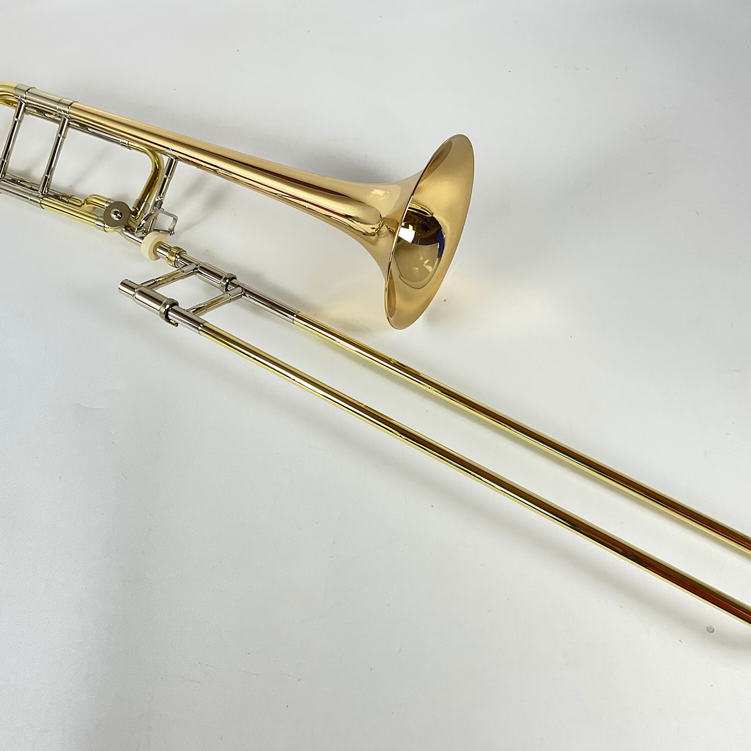 Demo Bach 42BOG Professional Bb/F Tenor Trombone in lacquer. Features include a .547" bore hand slide, open wrap rotor valve section, and a 8.5" gold brass bell flare. Instrument is in very good condition apart from minor surface scratching and a few spots of red rot and acid bleed on the handslide crook. Includes new Protec MX306CT case.