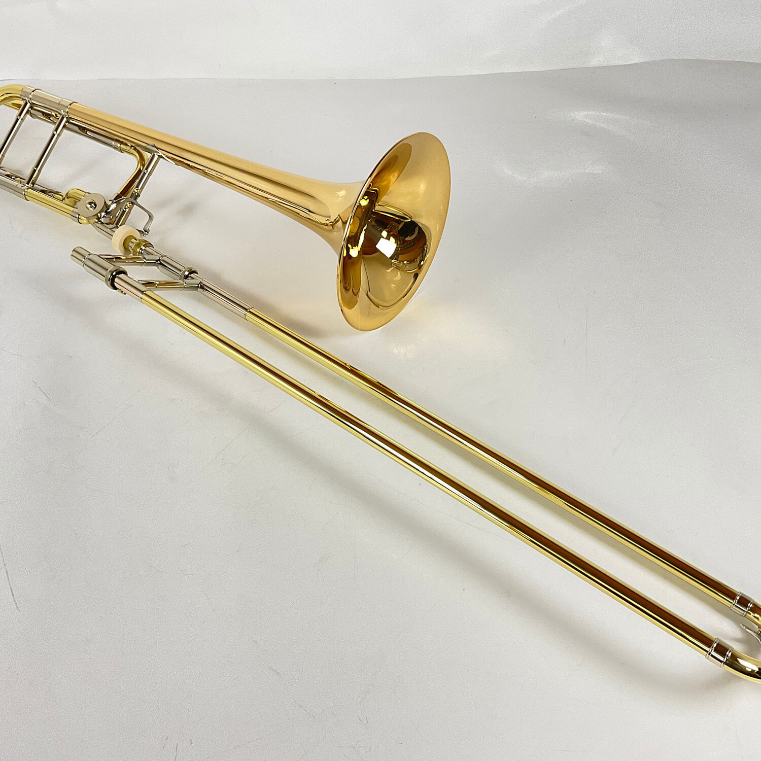 Demo Bach 42BOG Bb/F tenor trombone in lacquer finish. Features include a .547" bore yellow brass handslide, 8.5" hand-hammered gold brass bell, and an open wrap rotor valve section. Instrument is in very good condition apart from minor surface imperfections. Includes Protec Max case.