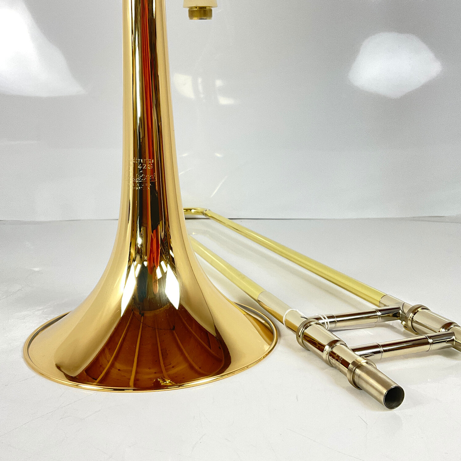 Demo Bach 42BOG Bb/F tenor trombone in lacquer finish. Features include a .547" bore yellow brass handslide, 8.5" hand-hammered gold brass bell, and an open wrap rotor valve section. Instrument is in very good condition apart from minor surface imperfections. Includes Protec case.