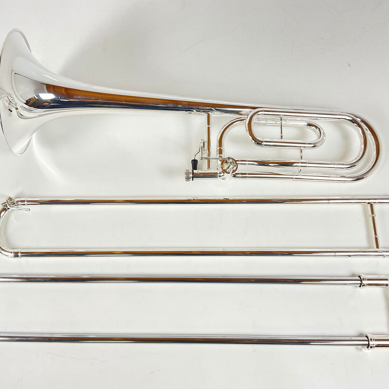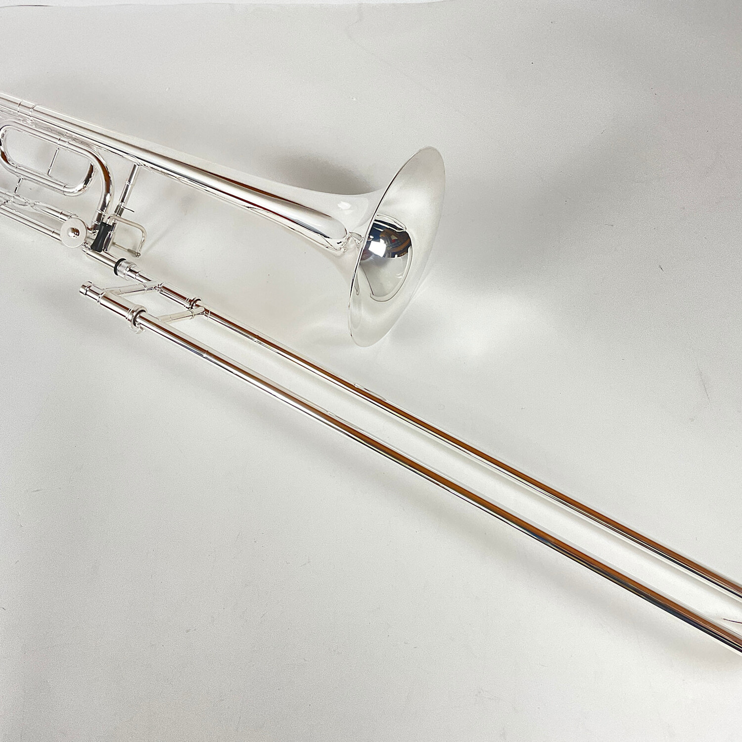 Demo Dillon Bb/F Large Bore Tenor Trombone in silver plate. Features include a .547” bore light weight nickel silver handslide, closed wrap rotor valve f-attachment, and 8.5" rose brass bell flare. Instrument is in excellent, like-new condition. Includes original case and mouthpiece.
