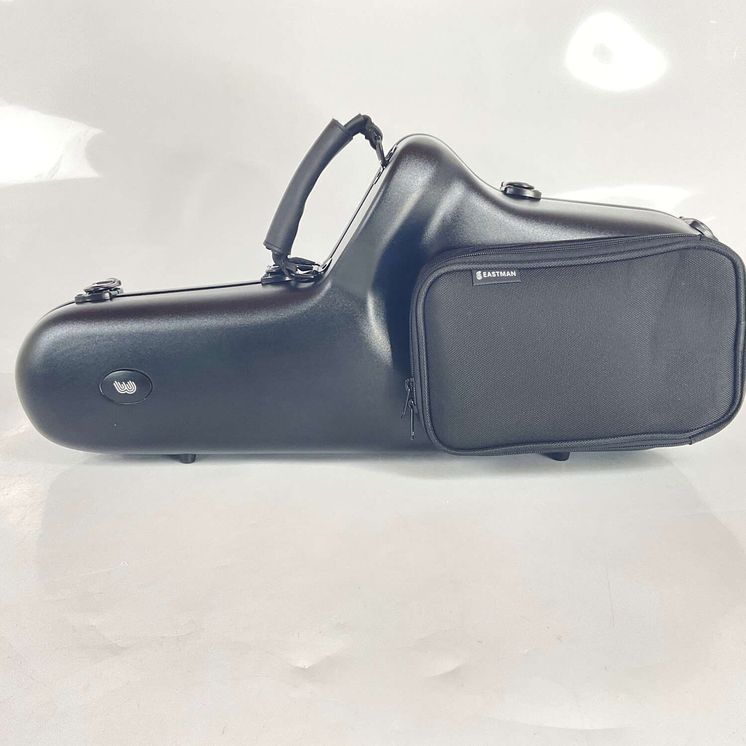 Demo Eastman EAS850 Rue St. Georges Eb alto saxophone in lacquer finish. Features include a high F# key, DS mechanism, adjustable thumb rest, and two necks ("R" and "S"). Instrument is in excellent, demo condition apart from minor surface scratching. Includes original case.