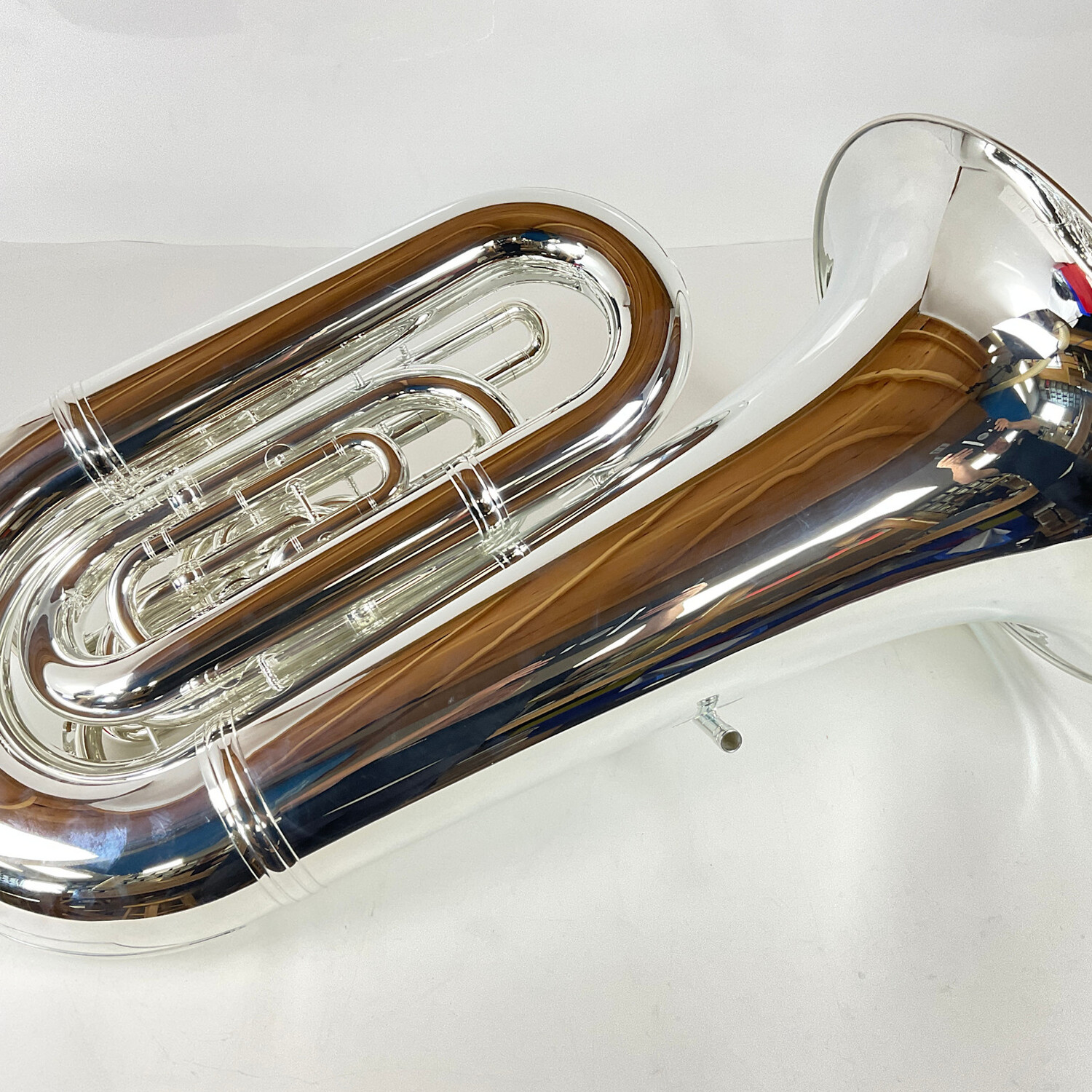 Demo Eastman EBC836S CC tuba (SN: Y2101660) in silver with factory hard-shell case. 20" upright bell and 4 front action pistons of .748/.812" bore with right thumb operated 5th rotor valve. Comes with Shires 2E (Euro shank) mouthpiece. This tuba is in nearly new condition.