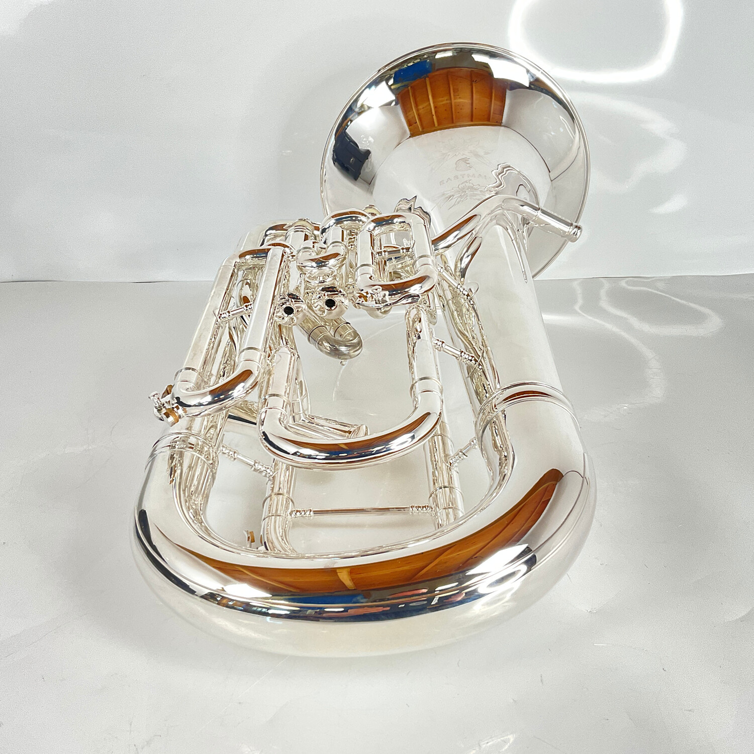 Demo Eastman EEP822S Euphonium (SN: T2100922) in silver with factory backpack case. 12" upright bell adn 3+1 compensating piston of .580/.630" bore. Takes large shank mouthpiece. In nearly new condition.