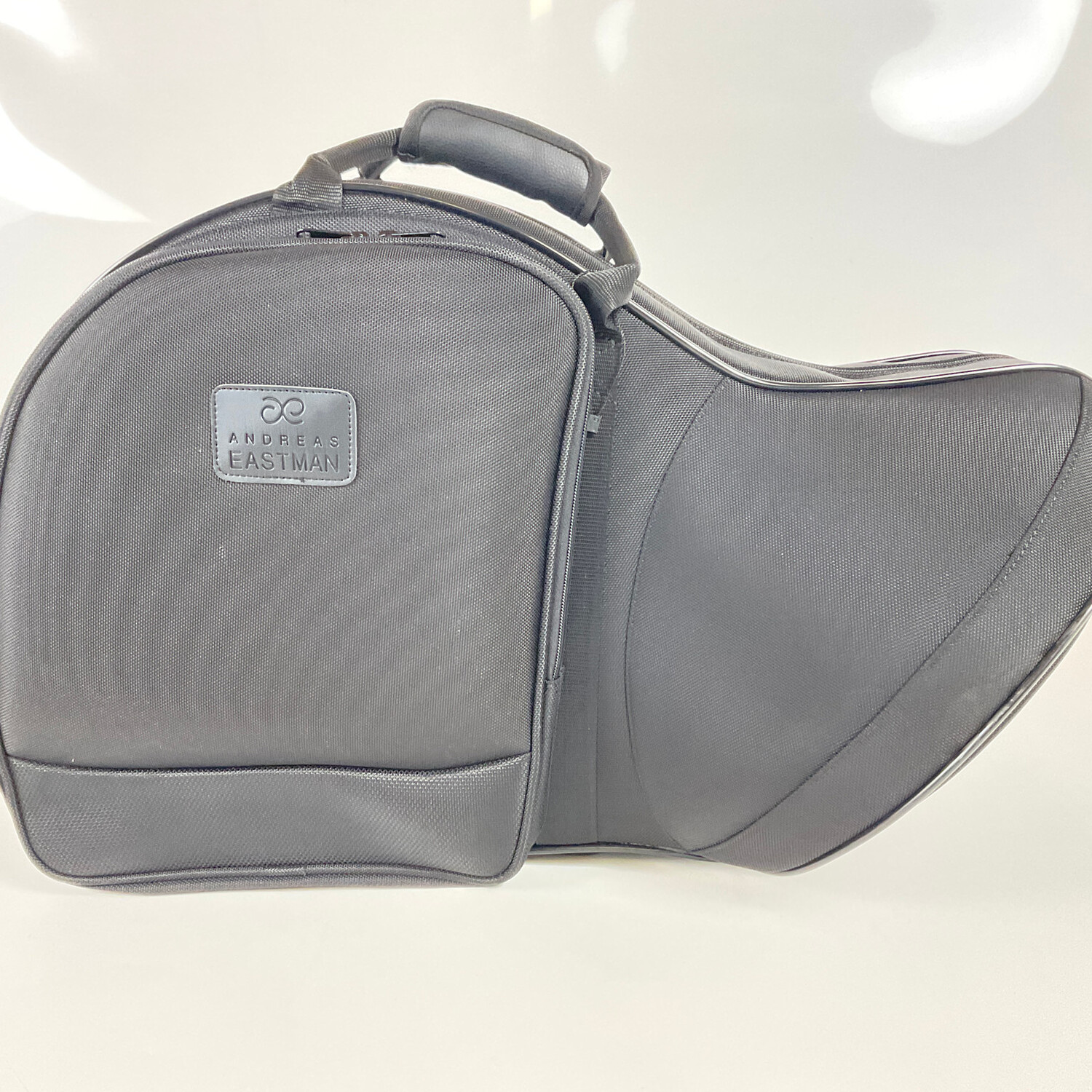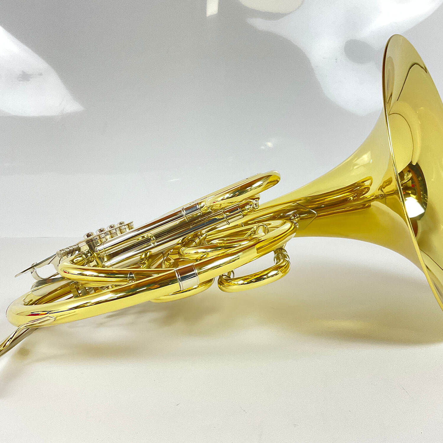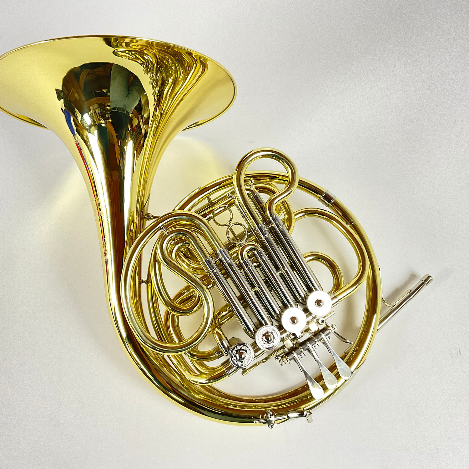 Demo Eastman EFH683 F/Bb double french horn in lacquered yellow brass. Instrument features a modified geyer wrap, . 468" bore, and medium, fixed bell. Horn is in excellent condition, like-new condition. Includes original case.