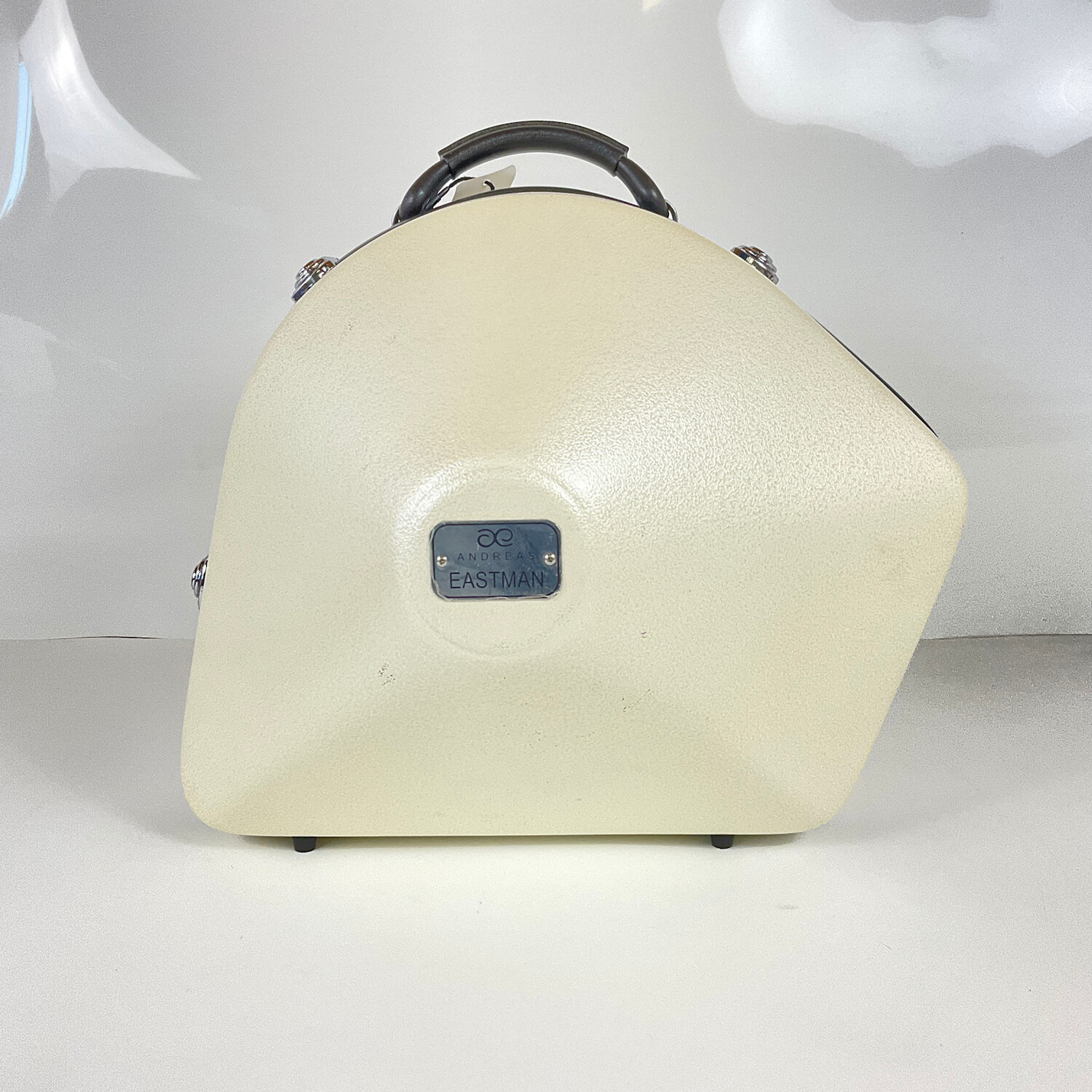 Demo Eastman EFH683GD F/Bb double french horn in lacquered gold brass. Instrument features a modified geyer wrap, . 468" bore, and a detachable medium, spun bell. Horn is in excellent, like-new condition. Includes original cut bell case.