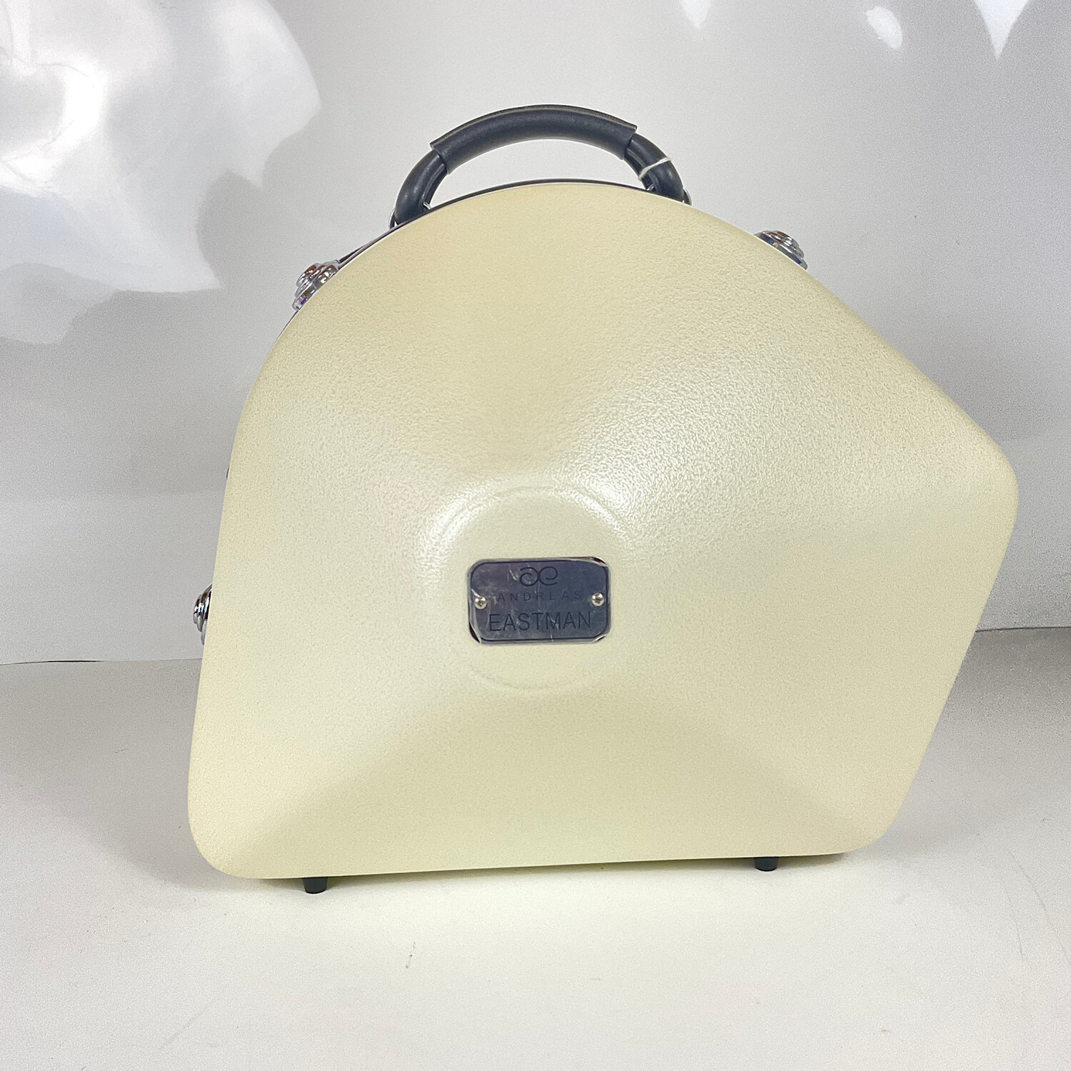 Demo Eastman EFH683GD F/Bb double french horn in lacquered gold brass. Instrument features a modified geyer wrap, . 468" bore, and a detachable medium, spun bell. Horn is in excellent condition apart from minor surface scratching. Includes original cut bell case.