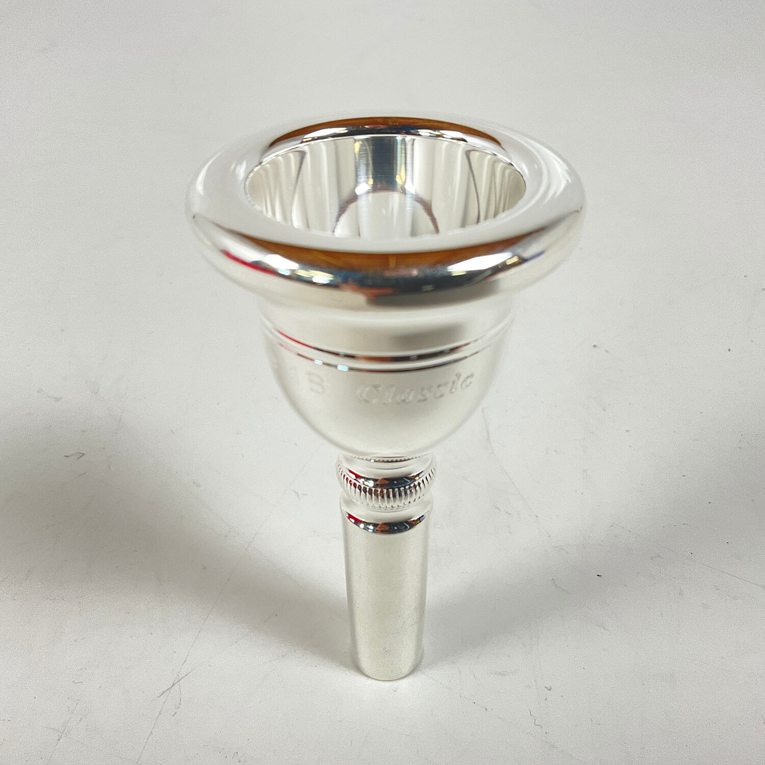 Used JK Exclusive 1B Classic tuba mouthpiece in silver plate. Mouthpiece is in very good condition apart from some insertion wear.