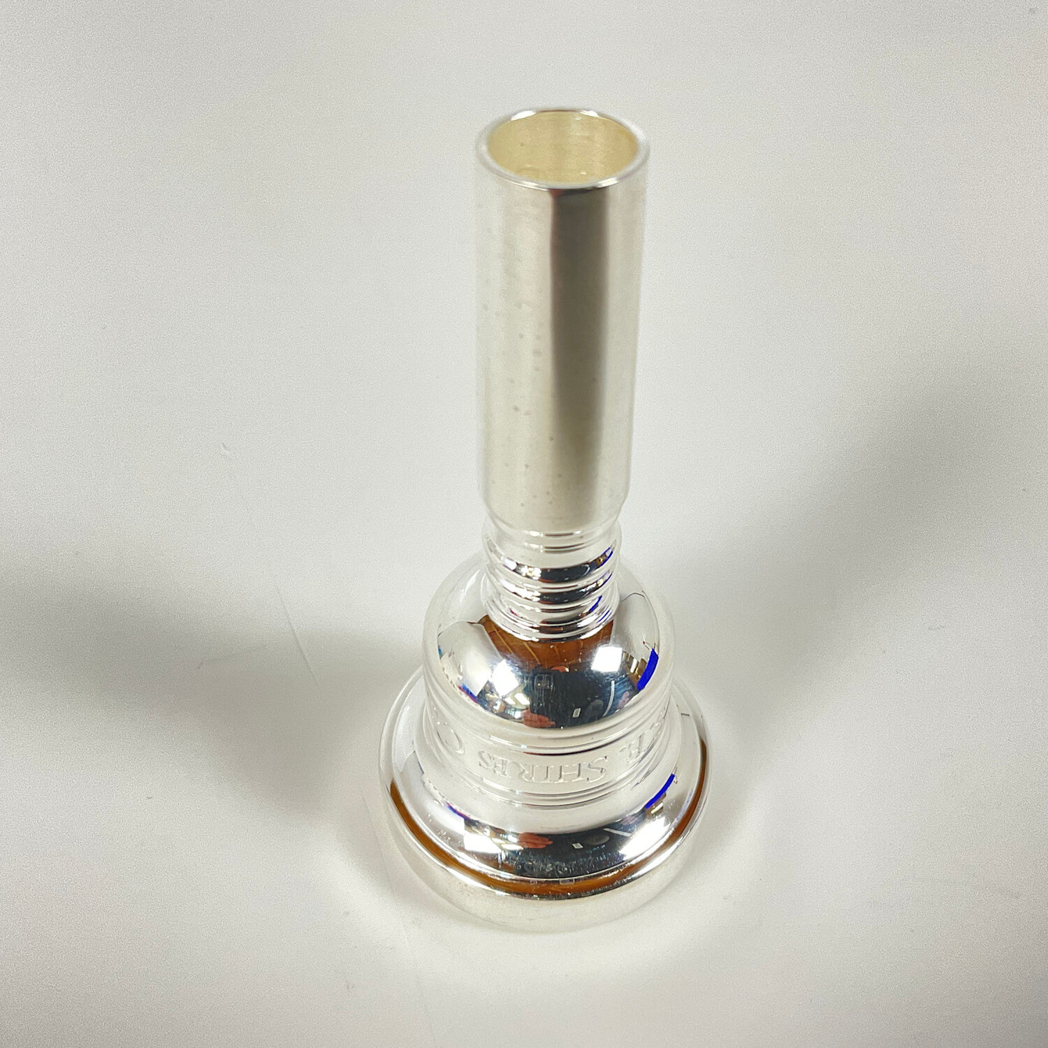 Demo S. E. Shires Colin Williams large shank trombone mouthpiece in silver plate. Mouthpiece is in excellent, like-new condition.