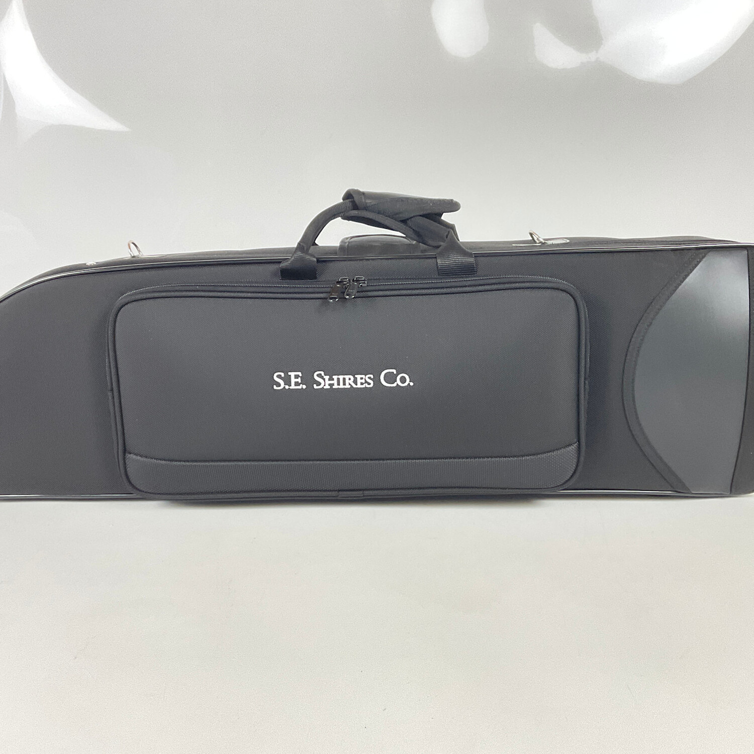Demo S.E. Shires Q Series TBQ30YA Bb/F tenor trombone in lacquer finish. Features include a lightweight, hand-hammered 8.5" yellow brass bell, .547" yellow brass handslide with nickel silver crook, open wrap axial flow valve section, and interchangeable leadpipe system. Instrument is in excellent condition apart from minor surface imperfections. Includes original S.E. Shires case and 1, 2, and 3 leadpipes.