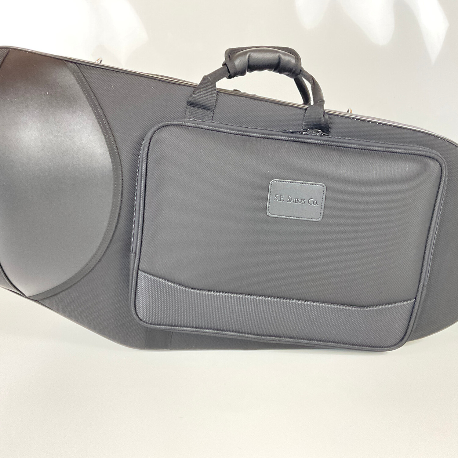 Demo S.E. Shires Q series model Q41MS (medium shank) Bb euphonium in silver plate, includes backpack style case. 11.5" upright bell and 3+1 compensating pistons of .591"/.669" bore. Instrument is in excellent condition apart from minor surface imperfections. Includes Shires 5DM medium shank mouthpiece and case.