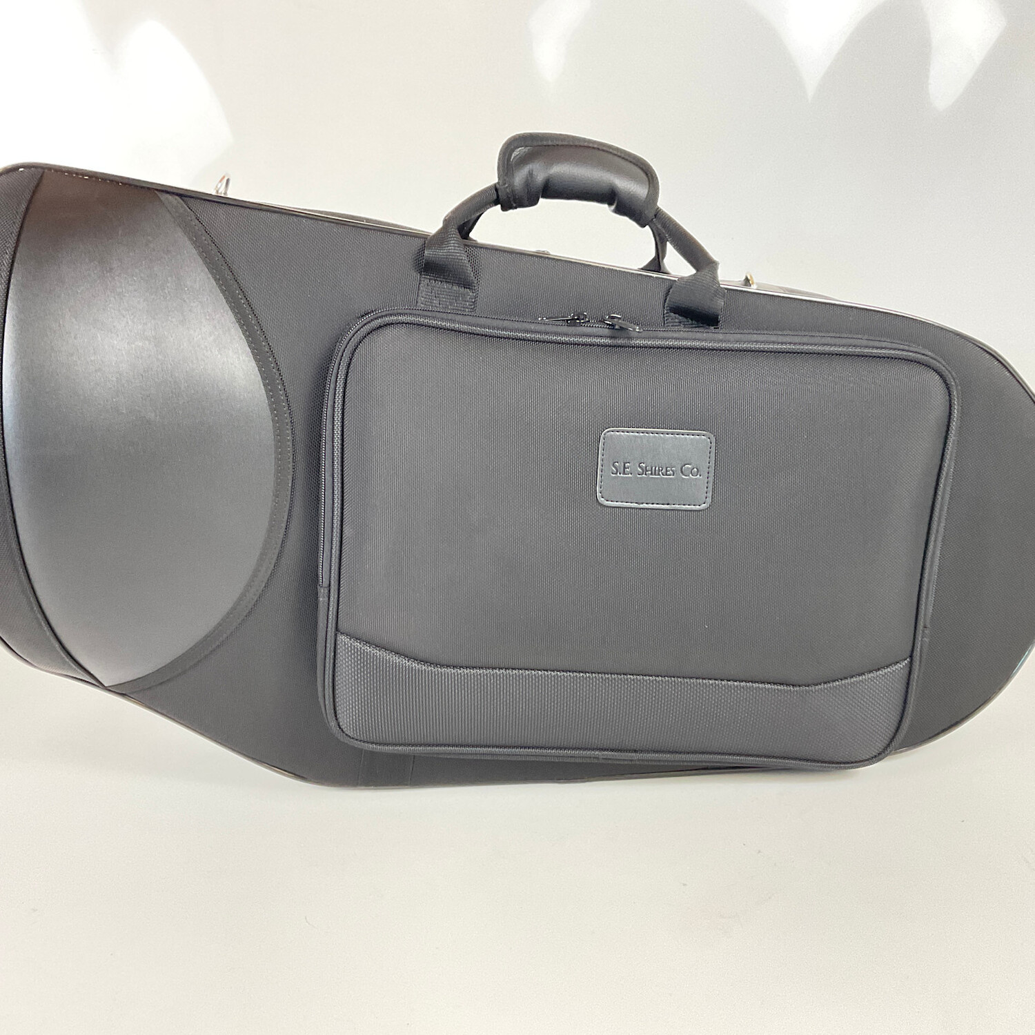 Demo S.E. Shires Q series model Q41MS (medium shank) Bb euphonium in silver plate, includes backpack style case. 11.5" upright bell and 3+1 compensating pistons of .591"/.669" bore. Instrument is in excellent condition apart from minor surface imperfections. Includes Shires 5DM medium shank mouthpiece and case.