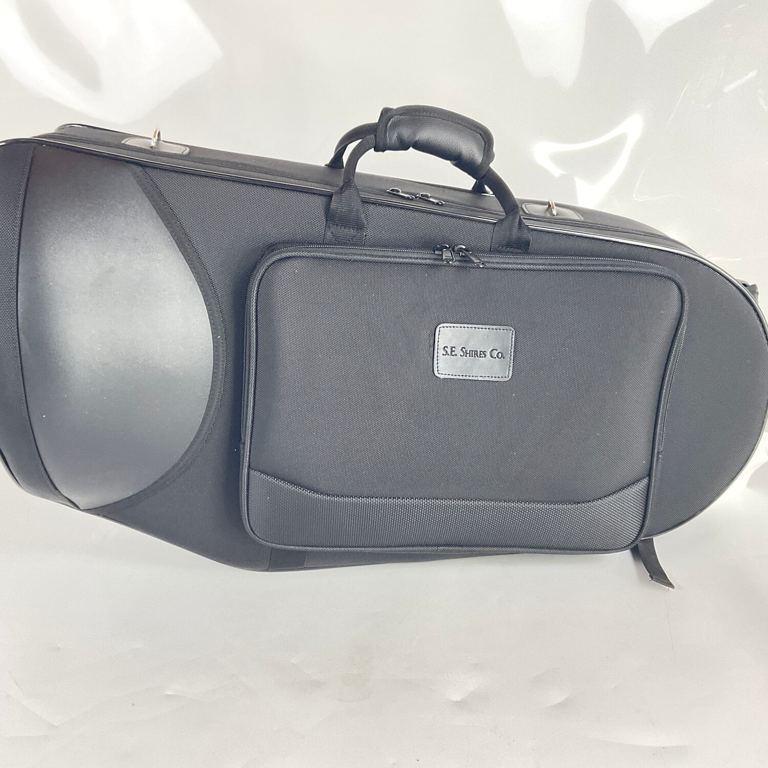 Demo S.E. Shires Q series model Q41MS (medium shank) Bb euphonium in silver plate, includes backpack style case. 11.5" upright bell and 3+1 compensating pistons of .591"/.669" bore. Instrument is in excellent, like-new condition apart from minor surface imperfections. Includes Shires 5DM medium shank mouthpiece and case.