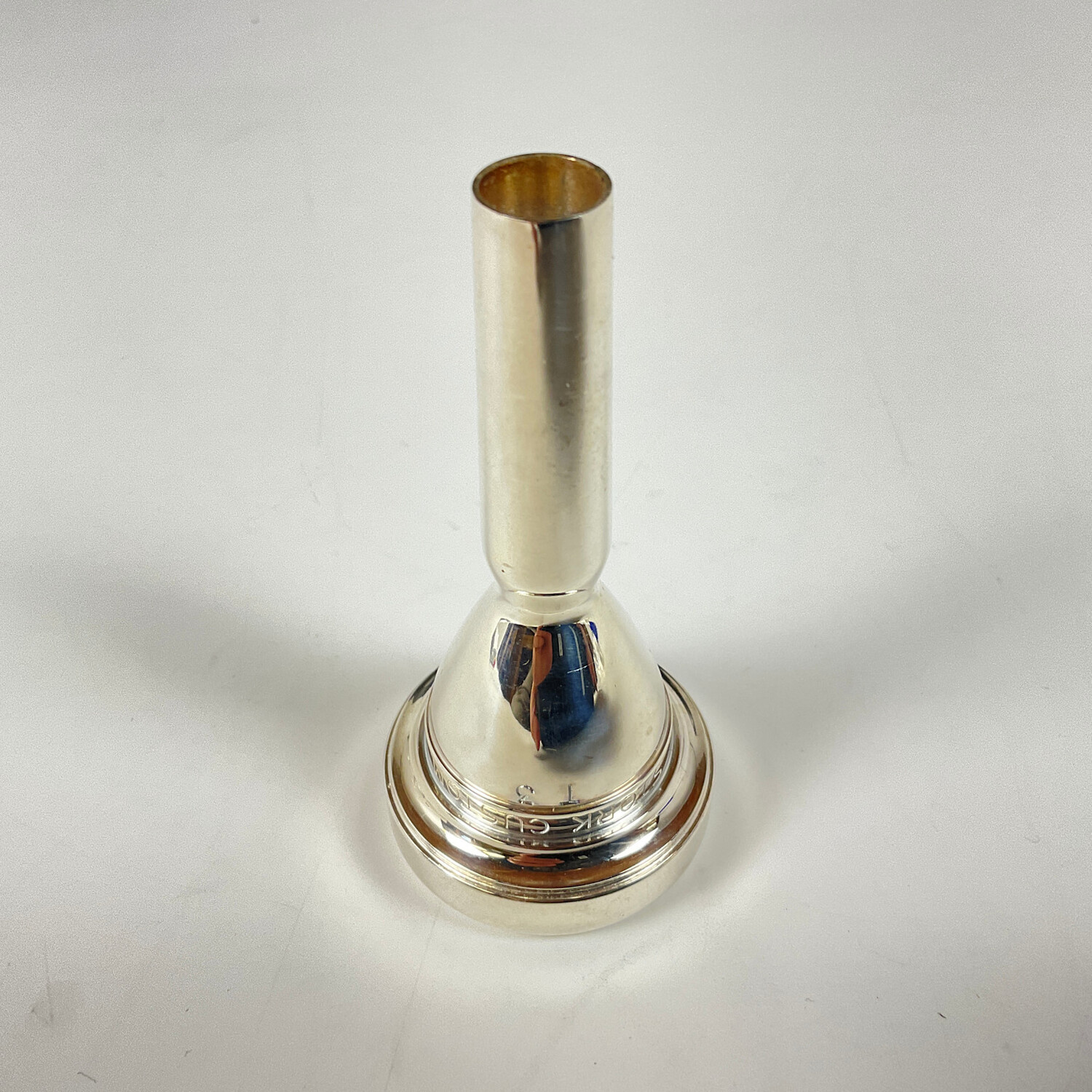 Demo Stork T3 small shank trombone mouthpiece in silver plate. Mouthpiece is in very good condition apart from surface scratching and some insertion wear.