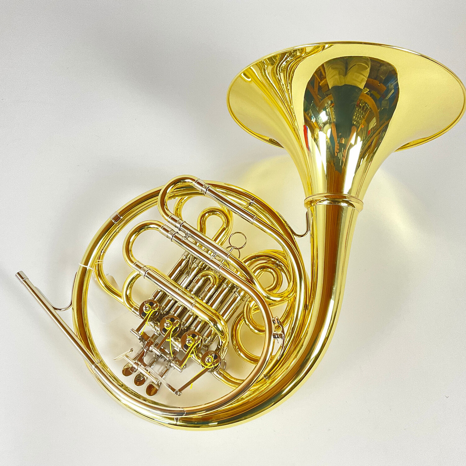 Demo Yamaha YHR-671D F/Bb double French horn in lacquer finish. Features include a geyer wrap layout, yellow brass construction, .472" bore, and medium detachable yellow brass bell. Instrument is in very good condition apart from minor surface scratching and a few small dings. Includes original case.