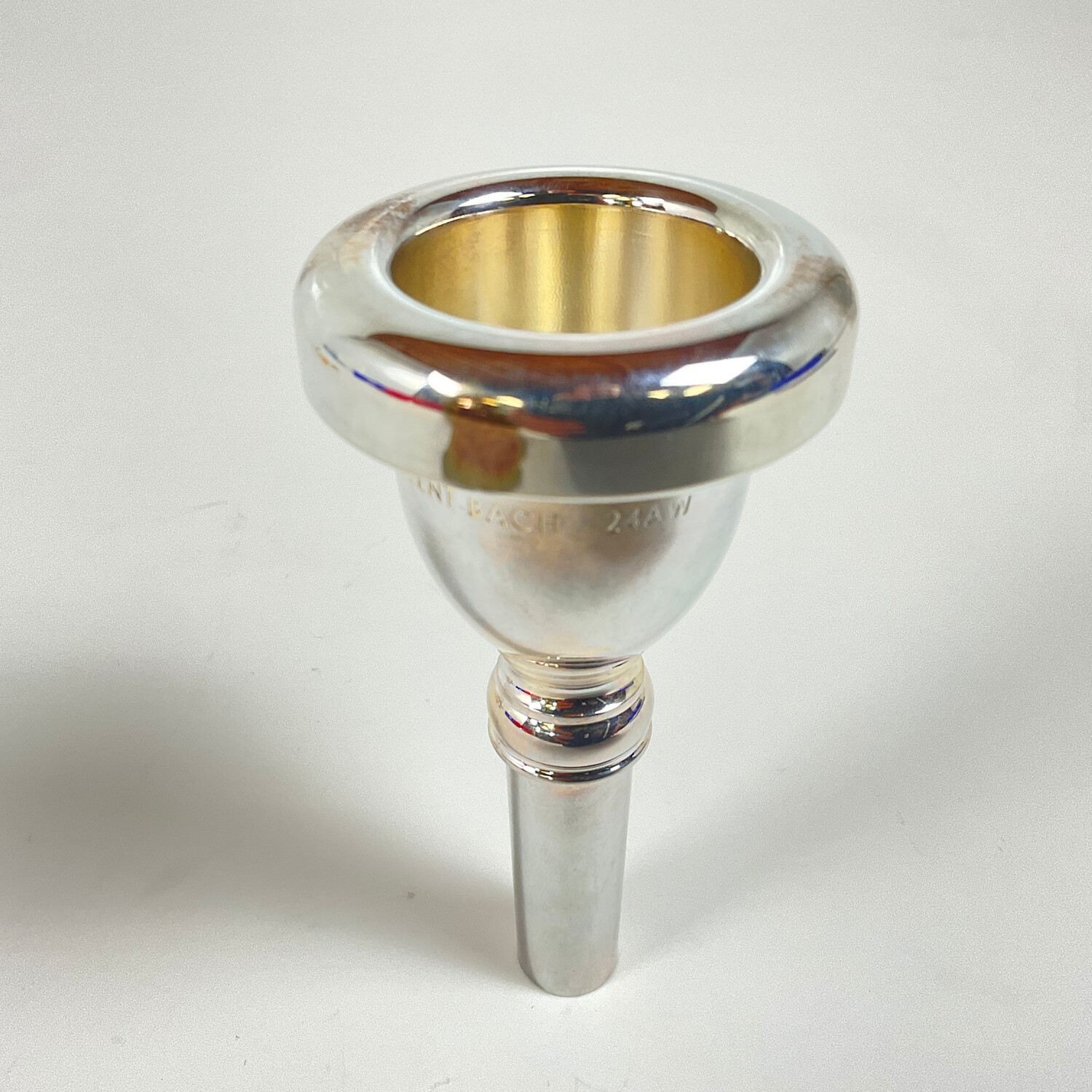 Used Bach 24AW tuba mouthpiece in silver plate. Mouthpiece is in very good condition apart from surface scratching and a slightly out-of-round shank.