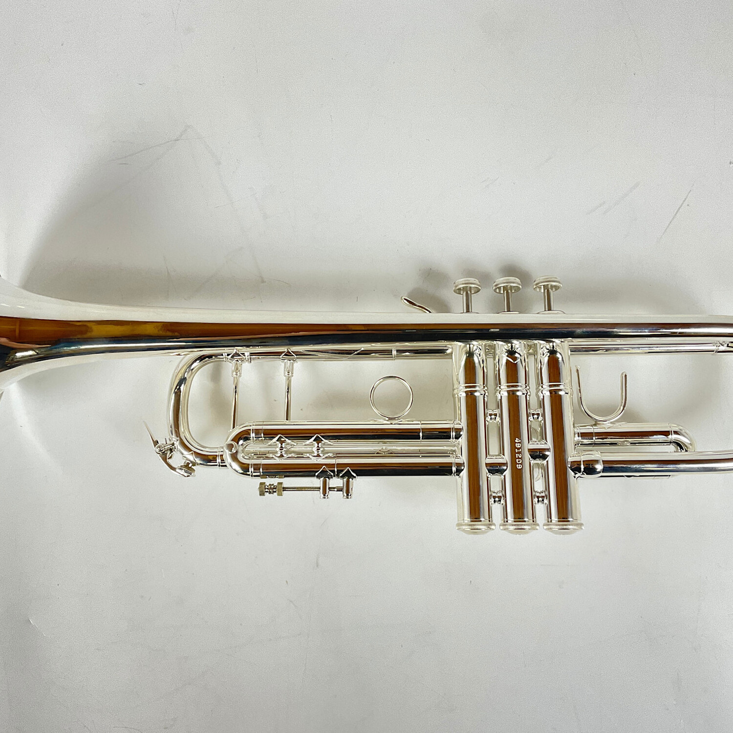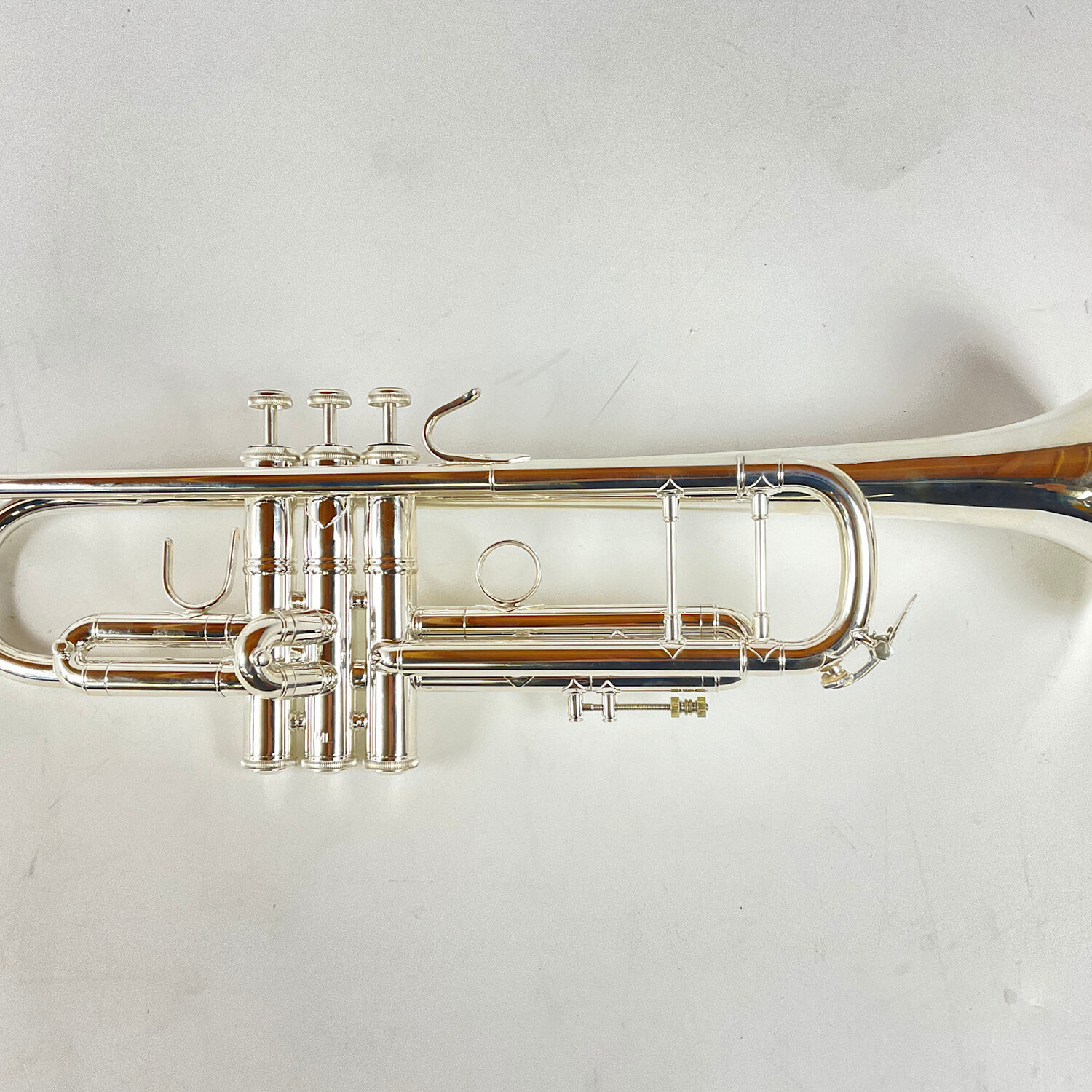 Used Bach Stradivarius Model 37, ML bore (.459"), Bb trumpet in silver plate, manufactured ca. late 1990s. This instrument has recently been overhauled and re-silvered. Instrument is in excellent condition apart from some signs of rippling in the bell throat. Valves are in very good condition and have not have plated. Includes original case.