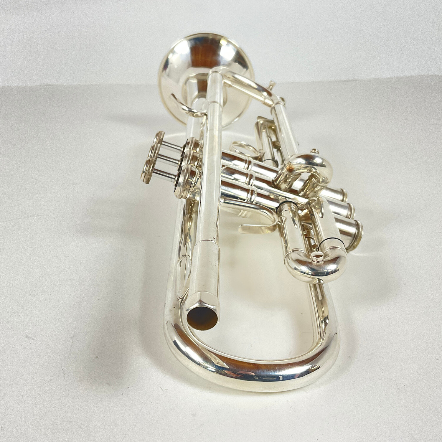 Used Bach Stradivarius Model 37, ML bore (.459") in silver plate, manufactured ca. 2010s. Instrument is in good condition apart from some surface scratching, a few dings, and some spots of pitting. Includes original Bach case.