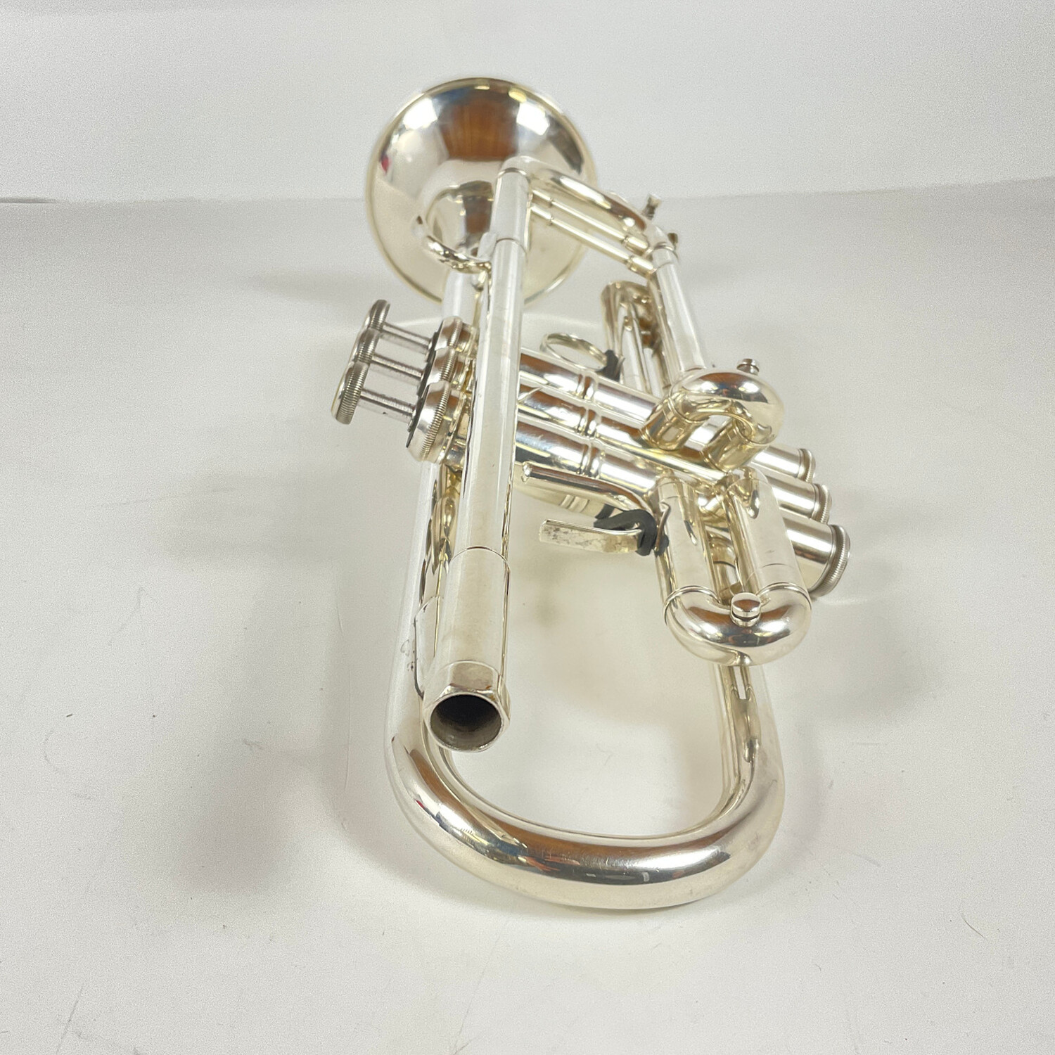 Used Bach Stradivarius model 37, ML bore (.459") in silver plate. Manufactured ca. 1982. Instrument is in good condition apart from some surface scratching, some dings in the bell and bell tail, and some evidence or prior dent removal in the bell. Includes original Bach case.