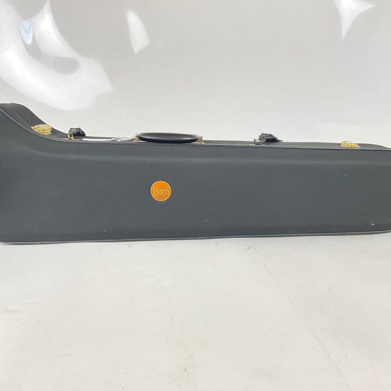 Used Bach 42B Bb/F Tenor Trombone in lacquer finish. Features include a .547" bore handslide, closed wrap rotor valve section, and 8.5" yellow brass bell flare. Instrument is in good condition apart from surface scratching, dings, and some lacquer/surface wear. Includes Bach case.