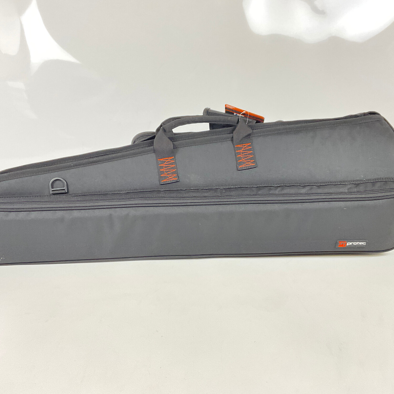 Used Bach 42BG Bb/F tenor trombone in lacquer finish. Features include a .547" handslide, closed wrap rotary valve section, and 8.5" gold brass bell. Instrument is in good condition apart from surface scratching, some lacquer finish, pitting/wear at contact points, and some small dings.
