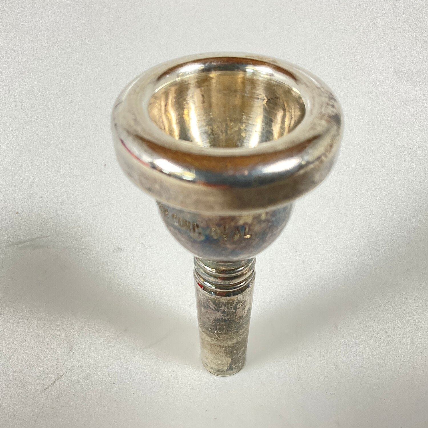 Used Bach Corp. 6 1/2AL large shank trombone mouthpiece in silver plate. Mouthpiece is in good condition apart from surface scratching, some insertion wear, and slightly dented shank.