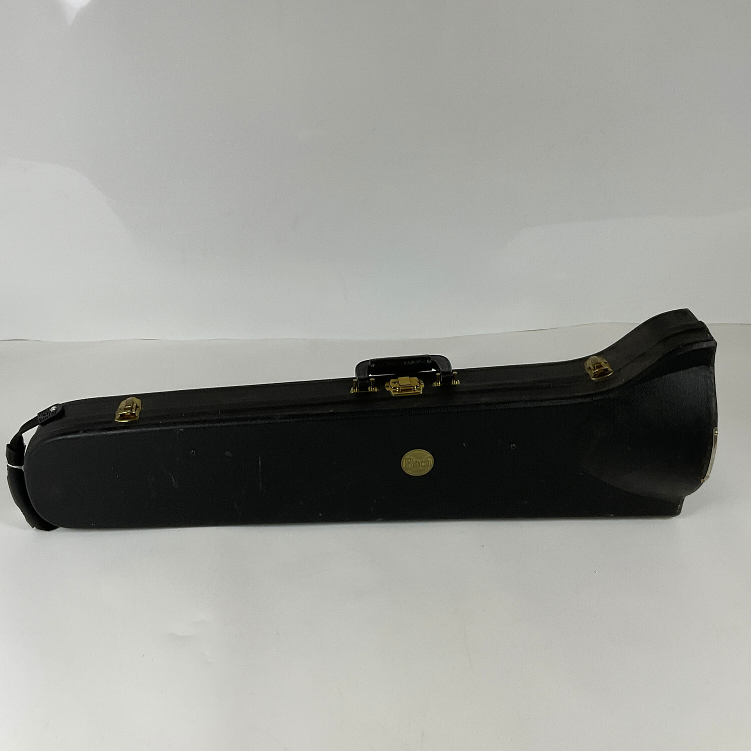 Used Bach "Corporation" 16 Bb Tenor Trombone in lacquer. .495"-.509" dual bore hand slide, 7.5" yellow brass bell flare. Instrument is in very good condition apart from minor surface scratching. Includes original case.