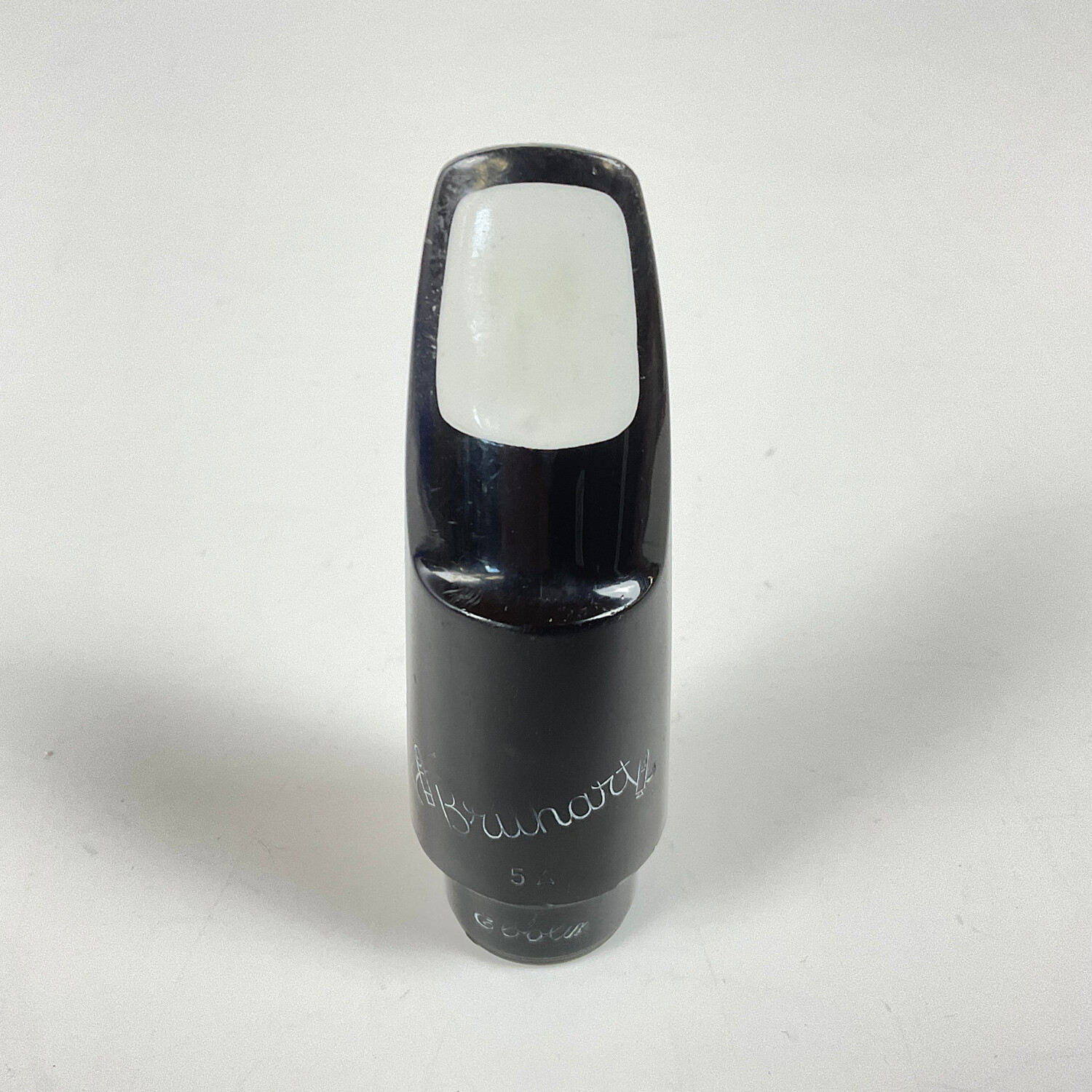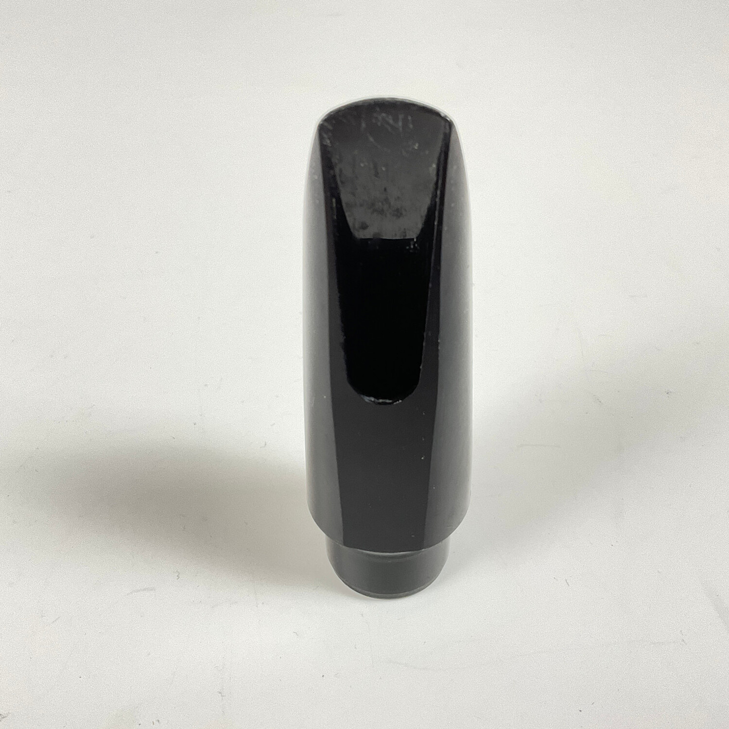 Used Brilhart 5* tenor saxophone mouthpiece in hard rubber. Mouthpiece has surface scratching, nicks, and surface wear throughout.