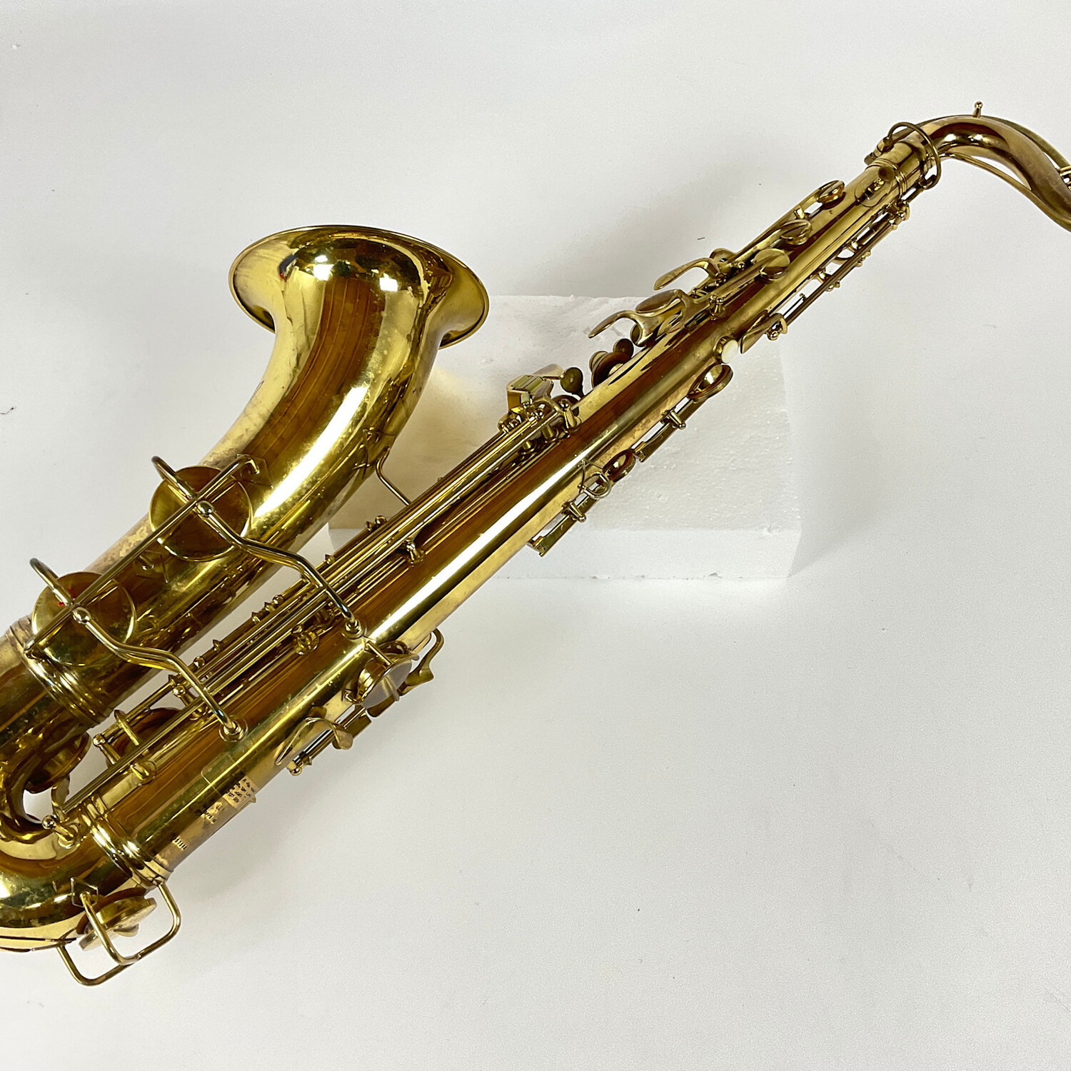 Used Conn 10M Tenor saxophone in lacquer finish. Instrument is in good/fair condition with lacquer wear and surface scratching, some dings. This instrument needs a full repad, hence the low price. Includes case.