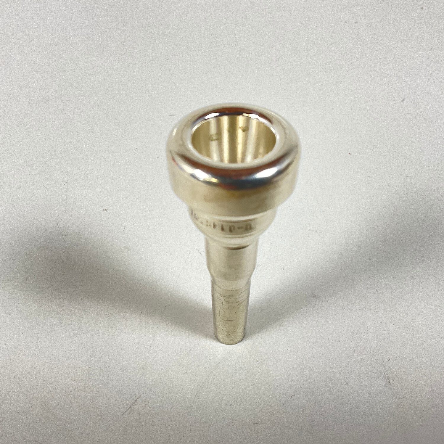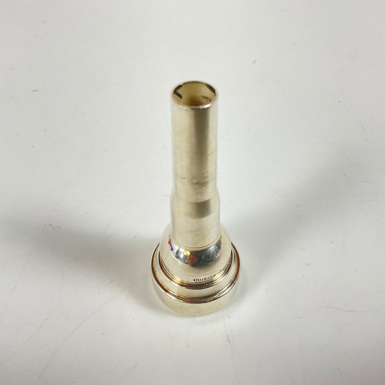 Used Curry 10.5FLD-B flugelhorn mouthpiece in silver plate. Mouthpiece is in good condition apart from surface scratching, insertion wear, and a small nick on the rim (silver is still good).
