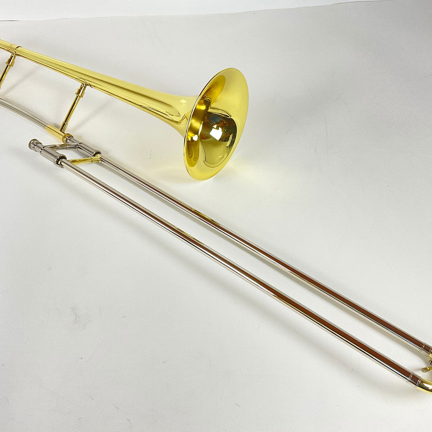 Used Edwards T302 Bb tenor trombone in lacquer finish. Features include a .500" nickel silver lightweight handslide, removable brass "1" leadpipe, and 7 3/4 yellow brass bell flare. Instrument is in very good condition apart from surface scratching. Includes original case.
