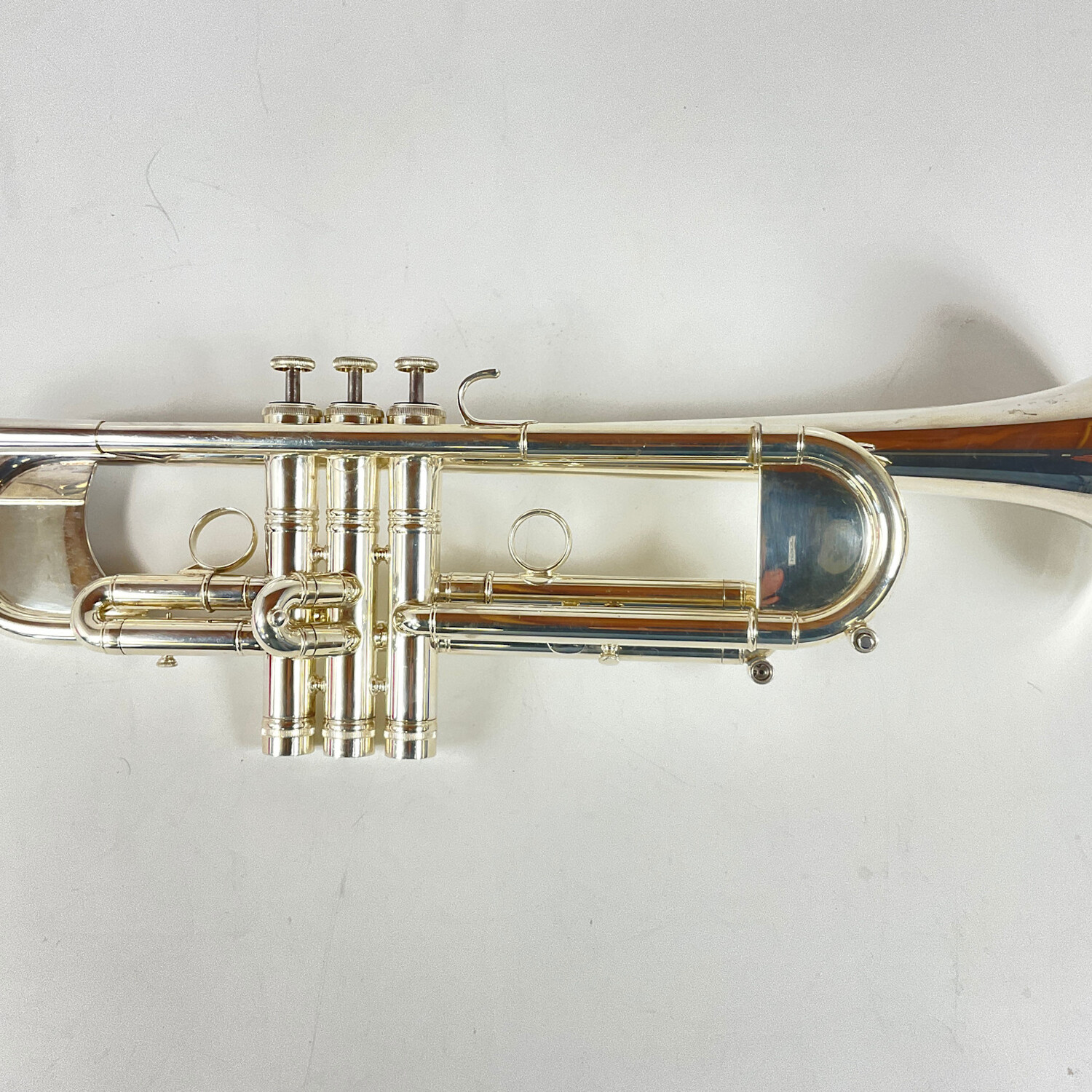 Used Kanstul 1500A Bb Trumpet in silver plate. Medium large (.460") bore. Features include a one piece hand hammered bronze bell from Kanstul’s no. 7 mandrel, and a no. 25 heavy mouthpiece receiver, weighted bell bow and tuning slide, and weighted bottom caps. Instrument is in very good condition apart from minor surface scratching and a few dings. Includes case.