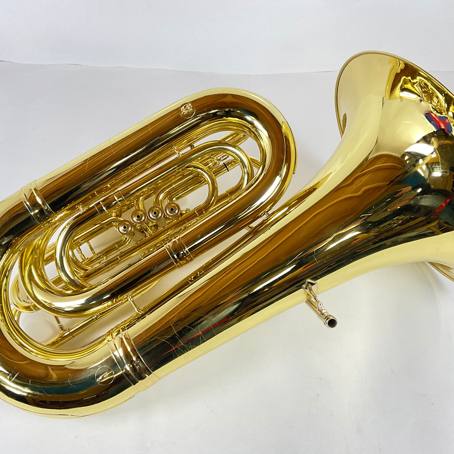 Used King 2341 BBb Tuba (SN: 615409) in lacquer with gig bag. 20" upright bell and 4 front action pistons of .687" bore. Takes American shank tuba mouthpiece but the large Euro shank will also fit it. This classic American tuba plays and sounds great. This tuba has a few dings and dents as to be expected on a used tuba.