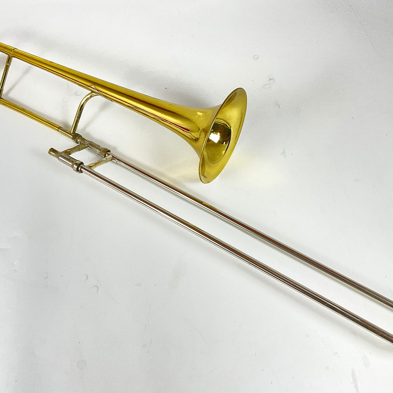 Used King 2B Bb Tenor Trombone in lacquer finish. Features include a .491"-481” dual bore lightweight handslide (.491" on the leadpipe side and .481" on the return side) with a Jiggs-style thinner 7-3/8” yellow brass bell flare. This horn was played by Dave Bargeron of "Blood, Sweat, and Tears" fame for a number of years and was used as his main instrument while he played on "Chicago - The Musical". This instrument was a special order 2B with an early iteration of a Jiggs bell.
