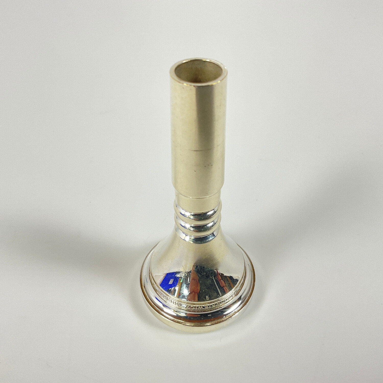 Used Marcinkiewicz 4 large shank trombone mouthpiece in silver plate. Mouthpiece is in good condition apart from surface scratching and some nicks.