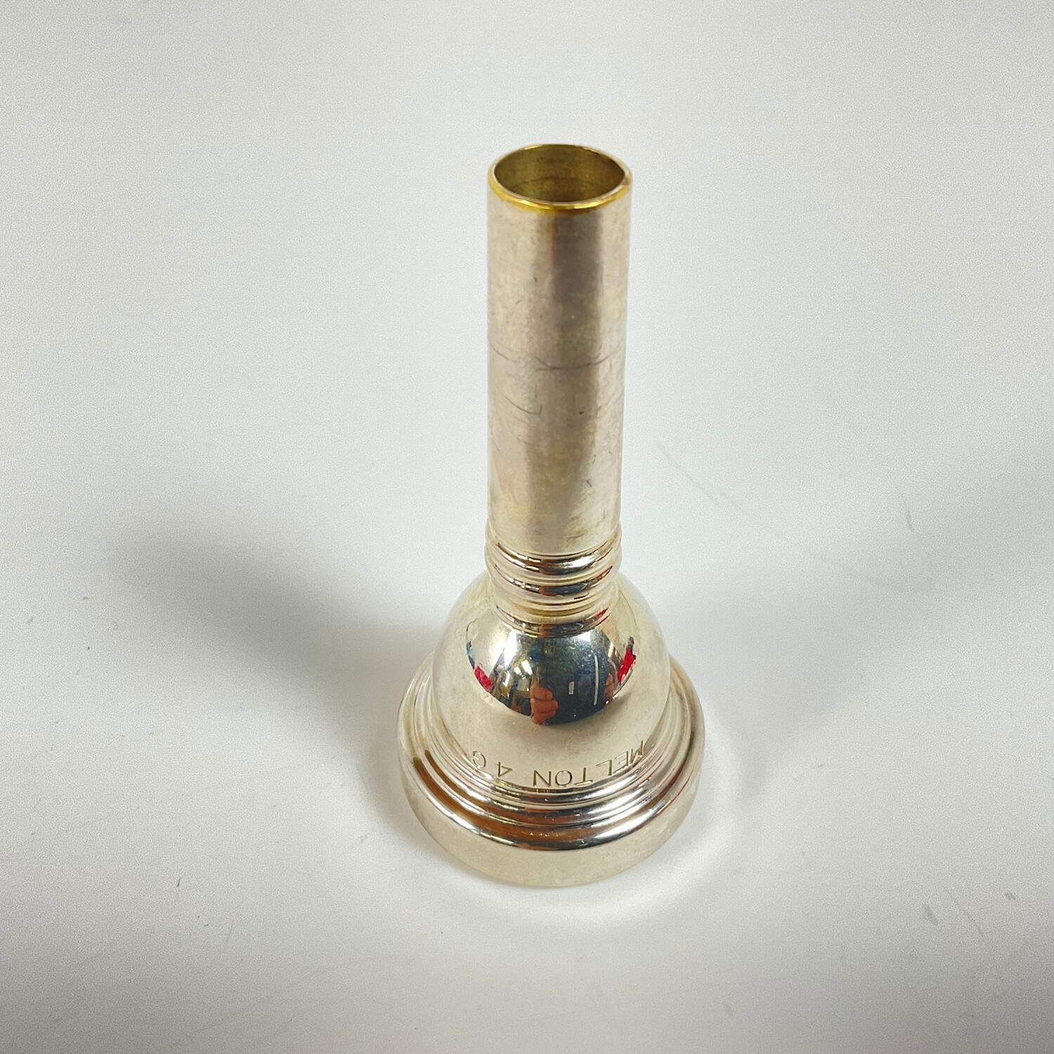 Used Melton 4G large shank trombone in silver plate. Mouthpiece is in good condition apart from surface scratching.