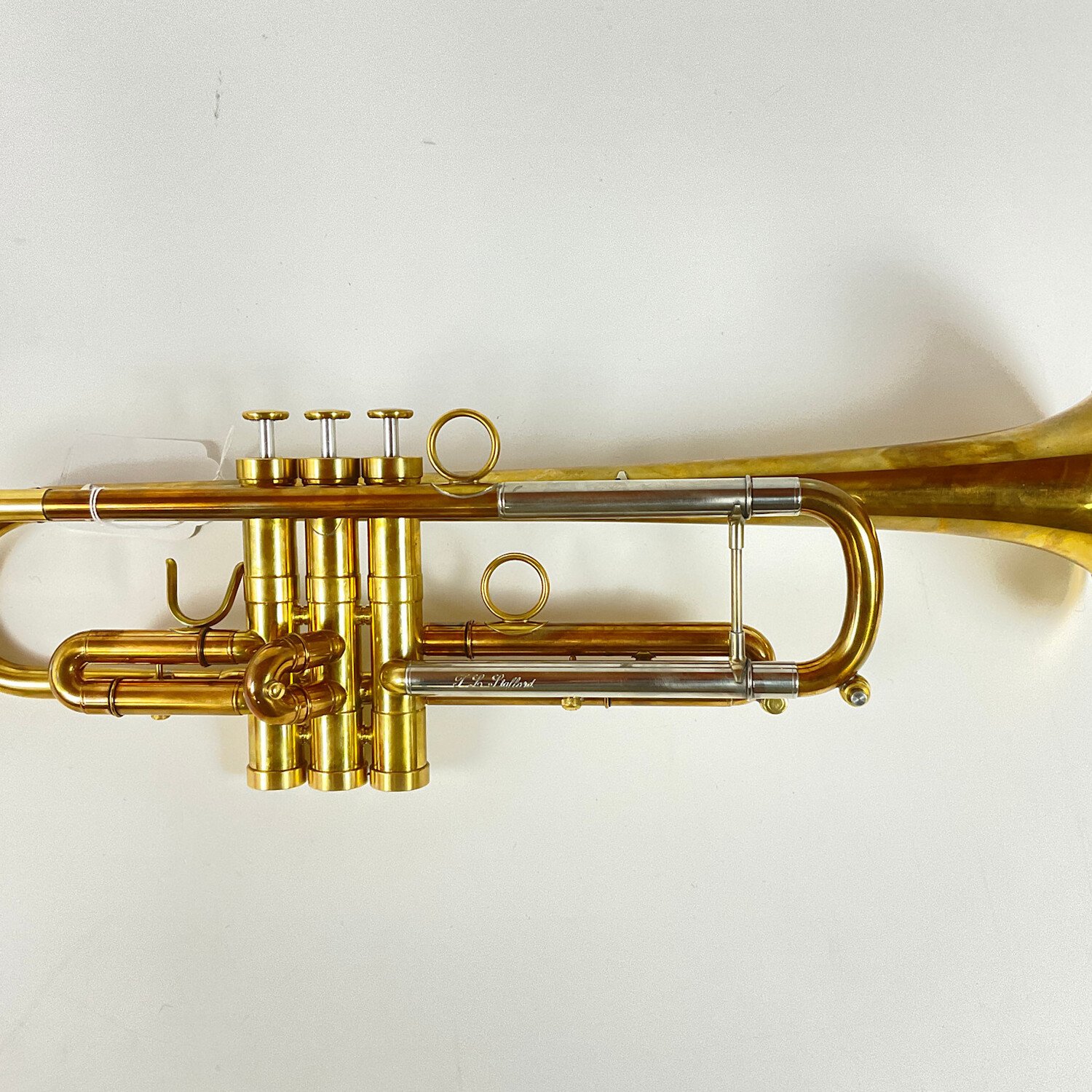 Used MG model RBM/J+, .460" bore, Bb trumpet in raw brass. Instrument is in excellent, like new condition apart from minor signs of use. This instrument was made for Terell Stafford and has his name engraved on the instrument. Features new style finger buttons, yellow brass bell and valve section, red brass leadpipe, tuning slide assembly and valve slide assembly. No case.