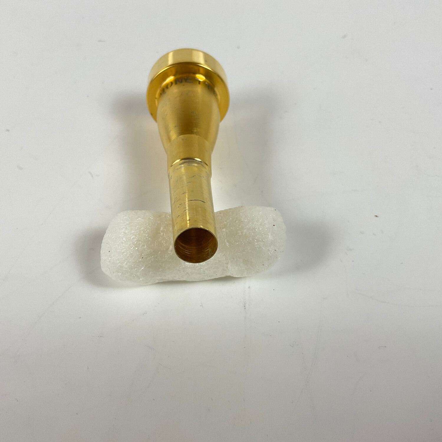 Used Monette Prana STC-1 B4S 84 Bb trumpet mouthpiece with mid shank, in gold shank. Mouthpiece has been bent for the previous player and the throat is marked 17. Mouthpiece is in very good condition apart from surface scratching.