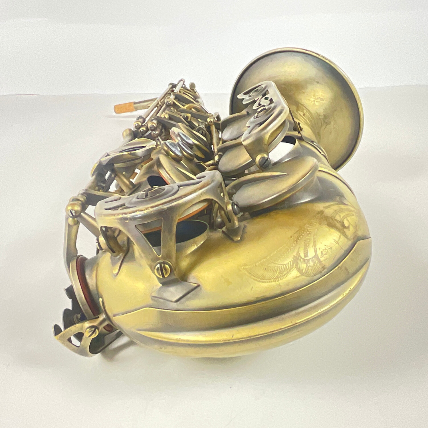 Used P. Mauriat SYSTEM-76 2nd edition professional alto saxophone in dark vintage lacquer. Instrument is in good/fair condition apart from heavier surface scratching and lacquer wear. Pads and corks are in good condition. Includes original case.