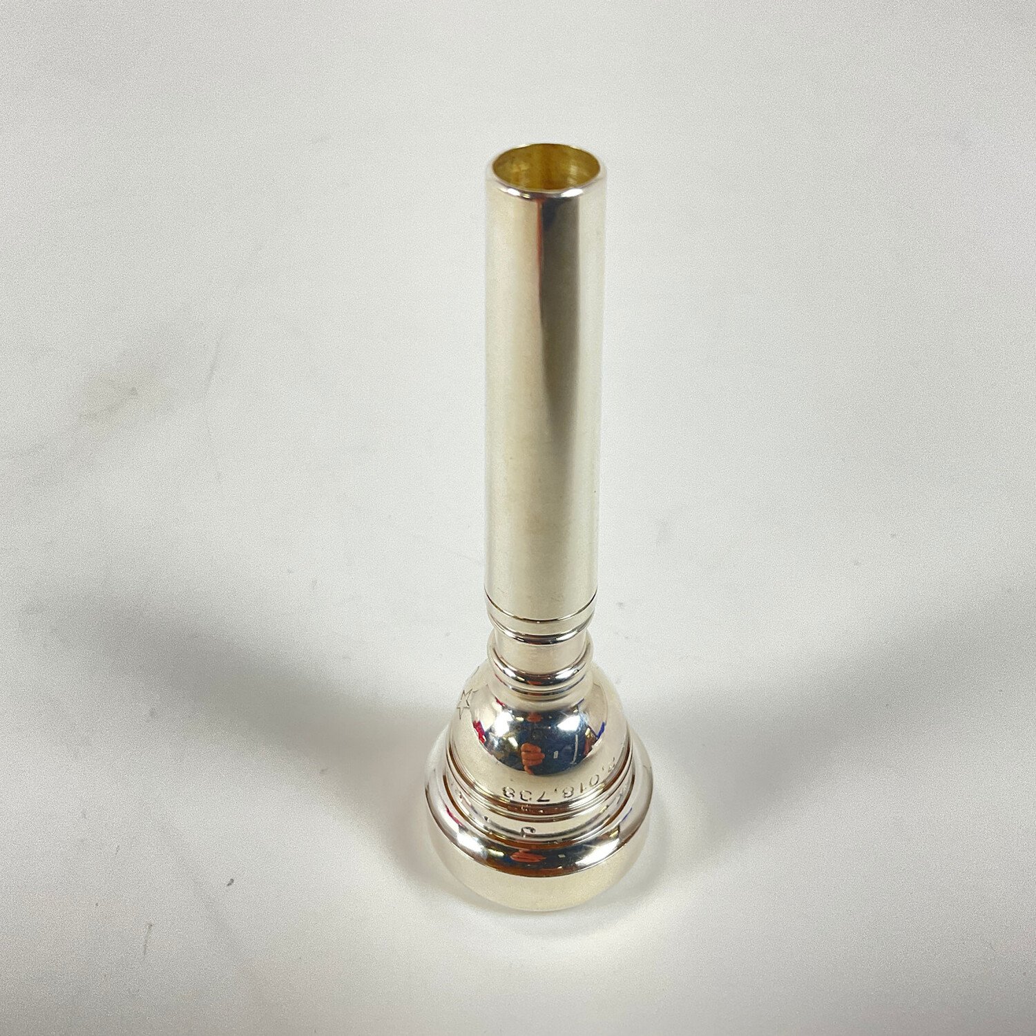 Used Parduba 5 1/2 HJ trumpet mouthpiece in silver plate. Mouthpiece is in very good condition apart from minor surface scratching.