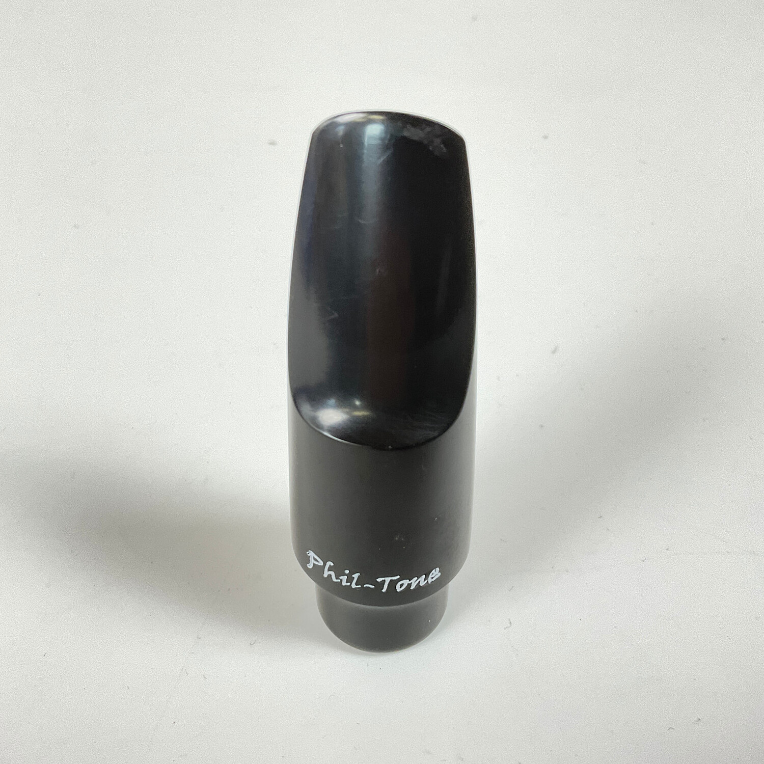 Used Phil-Tone alto saxophone in hard rubber. Mouthpiece is in good condition apart from surface scratching and some wear on the tip.