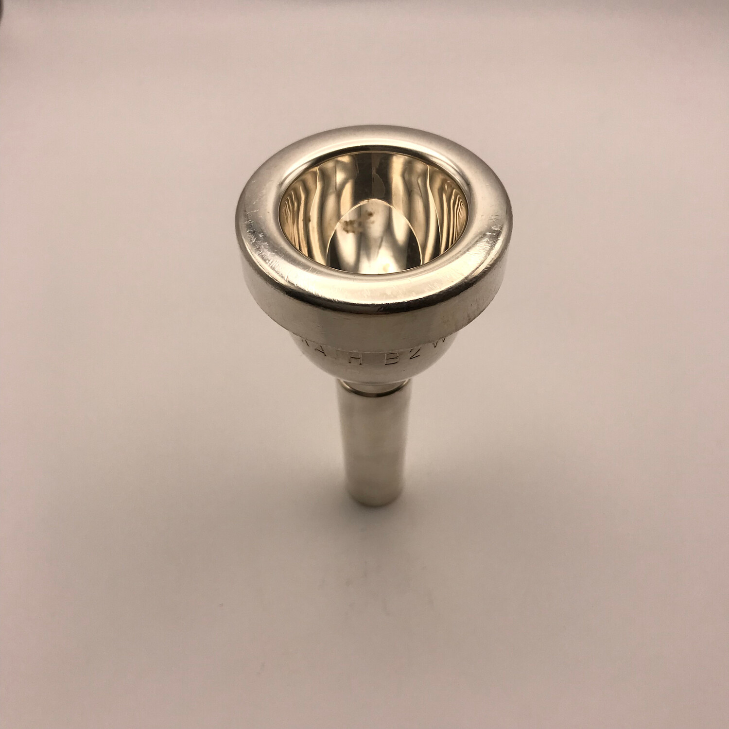 Used Rath B2W bass trombone mouthpiece in silver plate. Mouthpiece is in good condition apart from surface scratching and nicks throughout.
