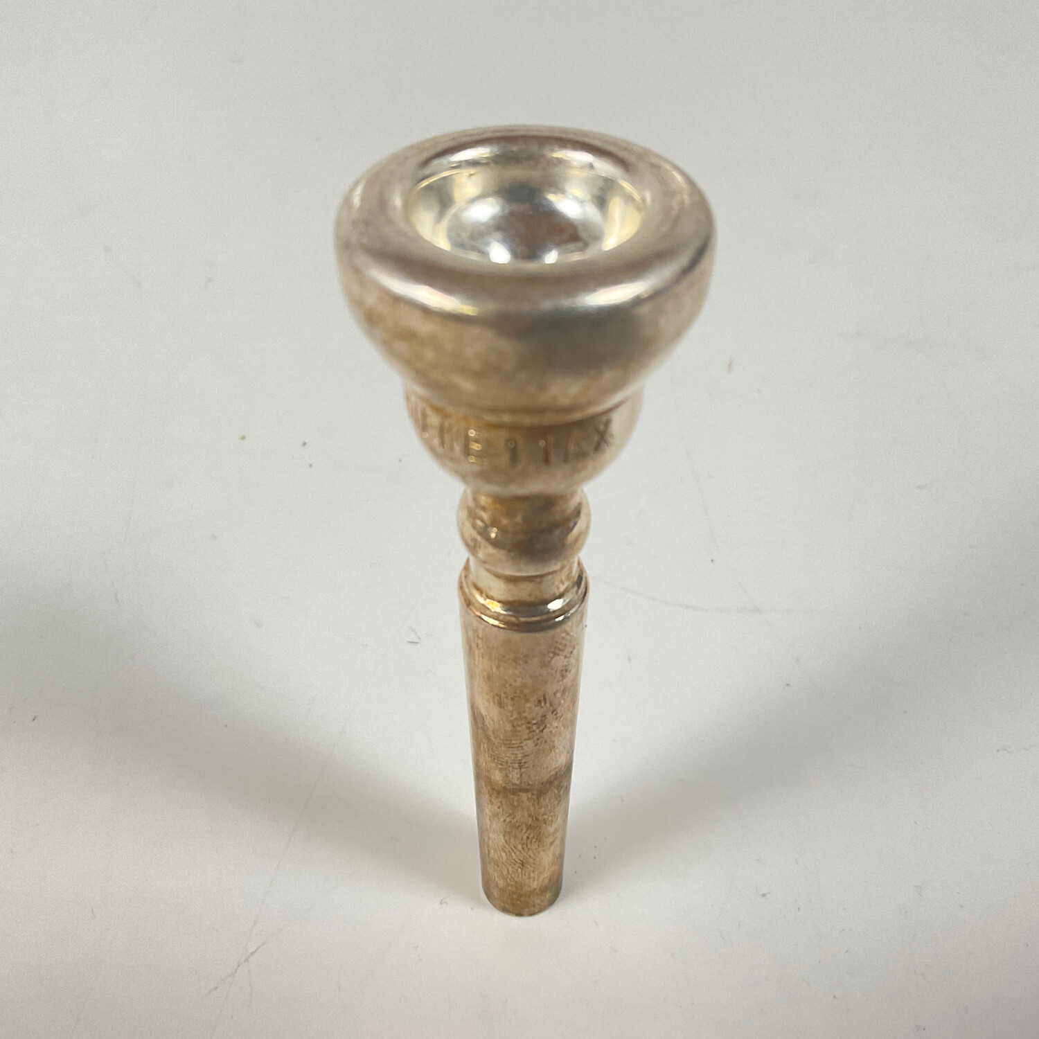 Used Schilke 11AX trumpet mouthpiece in silver plate. Mouthpiece is in good condition apart from insertion wear and minor surface scratching.