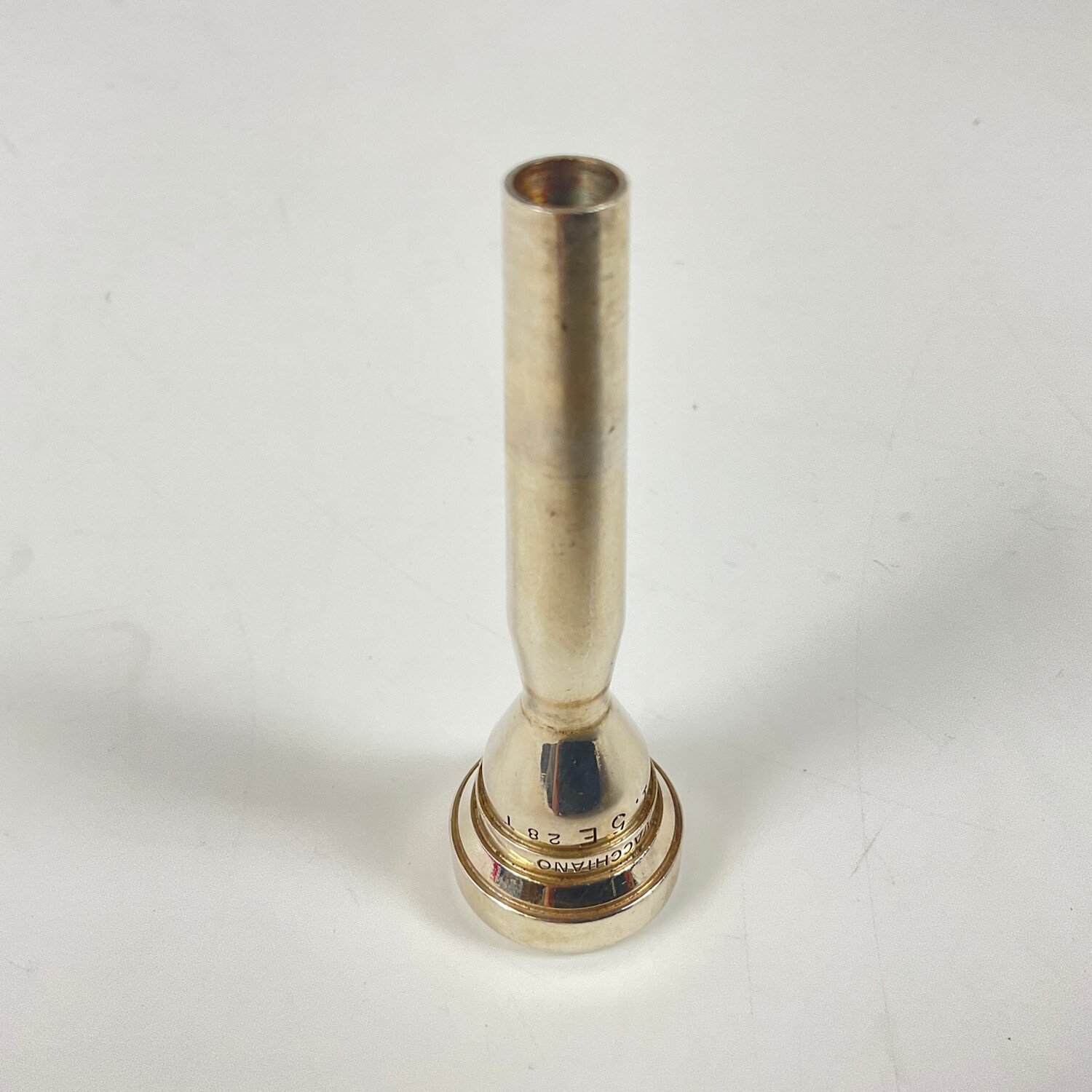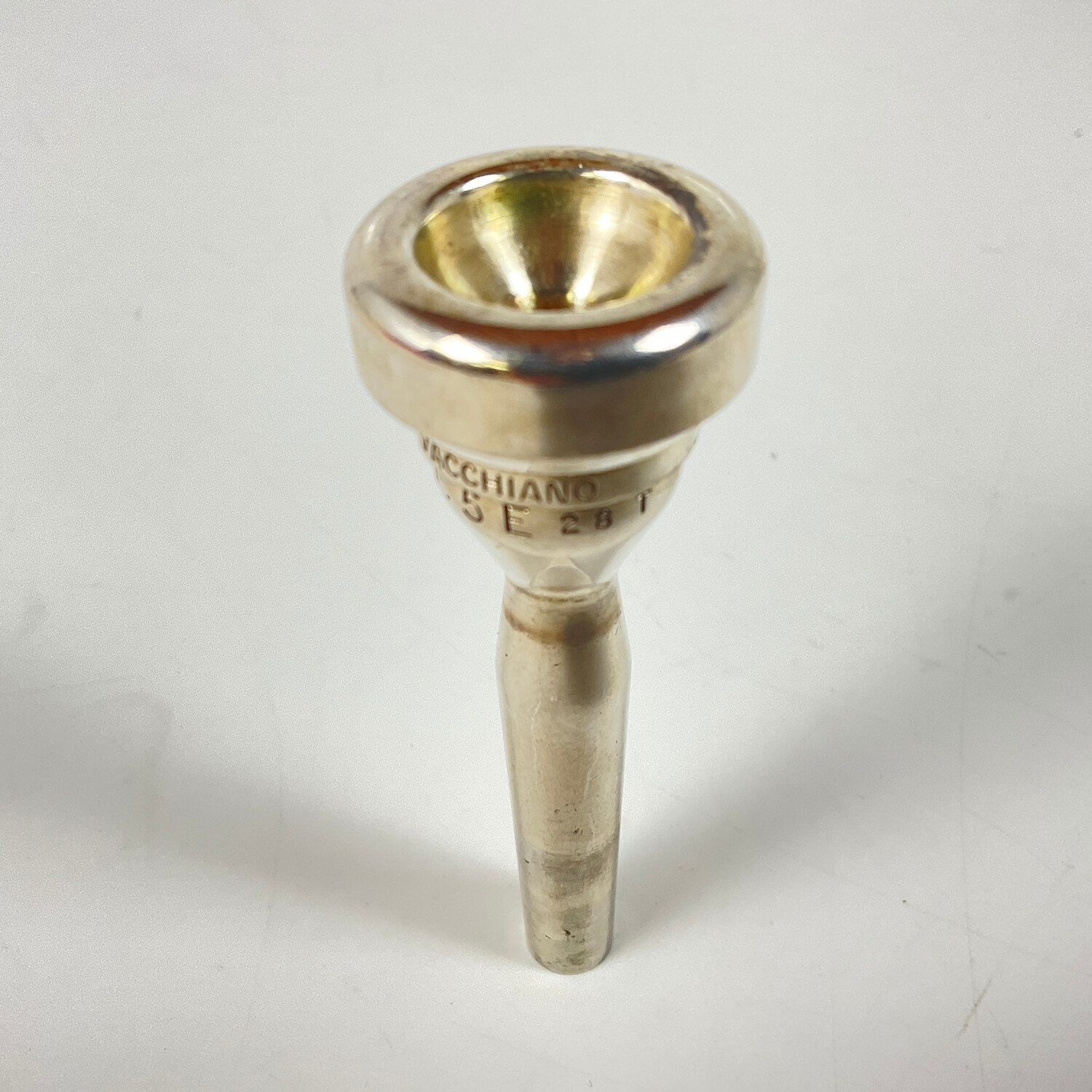 Used Stork Vacchiano 1 1/2E + 28T trumpet mouthpiece in silver plate. Mouthpiece is in good condition apart from surface scratching and insertion wear. Mouthpiece features the "T" backbore and 28 throat.