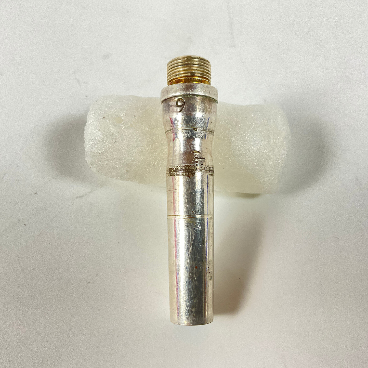 Used Warburton 9 cornet backbore in silver plate. Item is in good condition apart from surface scratching and insertion wear.
