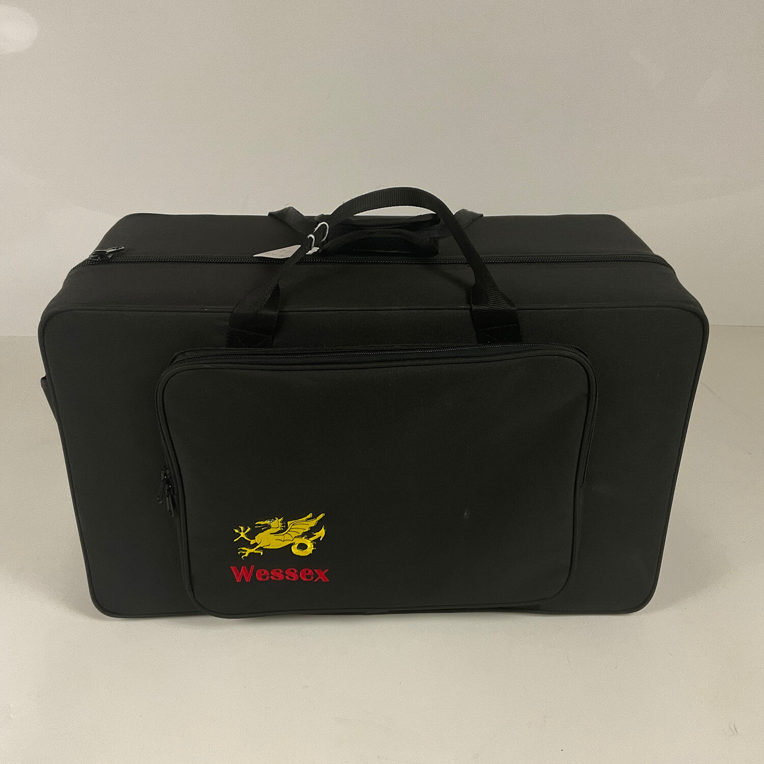 Used Wessex TF-135 F/Eb travel tuba (SN: 092425) in silver with zipper-shell case. 9" upright bell. 21.5" tall and 5 rotor valves of .51" to .55" bore. Takes American shank tuba mouthpiece. Comes with the extra Eb slides to make it a 4 valve Eb with an ascending 5th rotor. In very nice conditions. With only the faintest imperfections that won't even show up in pictures.