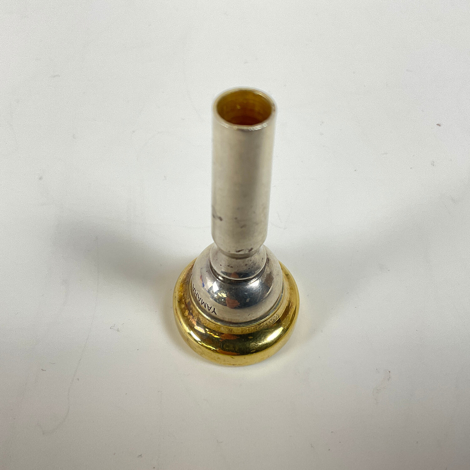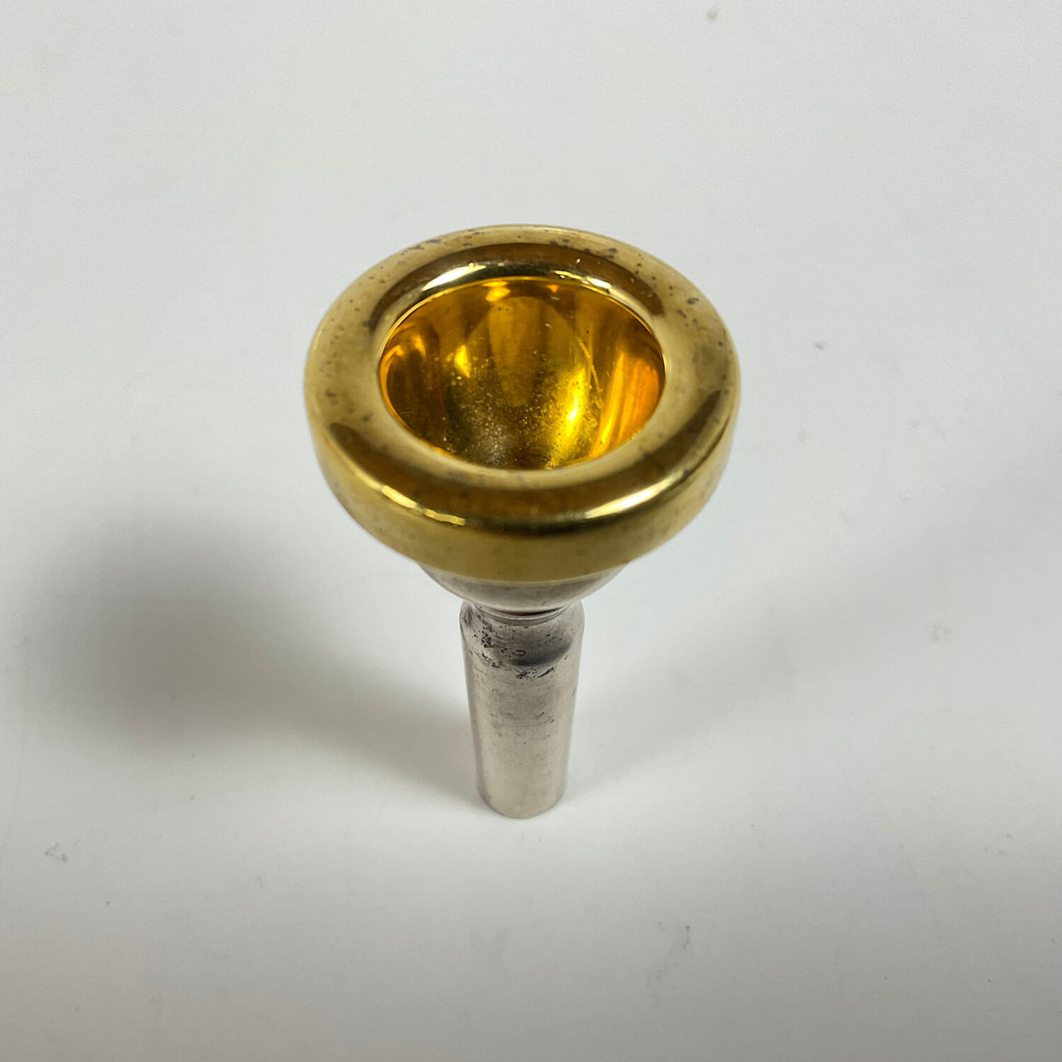 Used Yamaha 14E short shank cornet mouthpiece in gold rim/cup. Mouthpiece is in very good condition apart from surface scratching and a slightly out-of-round shank.