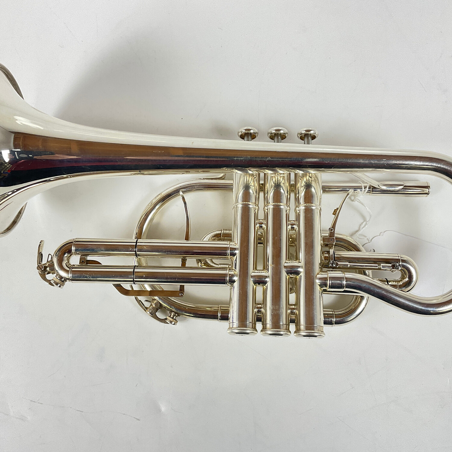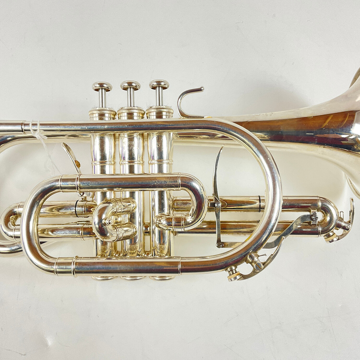Used Yamaha YCR-8335S (Gen 1) Bb cornet in silver plate. Instrument is in good condition apart from some surface scratching, some dings (inlcuding back bell bow), and a few spots of silver wear. Includes original Yamaha case.
