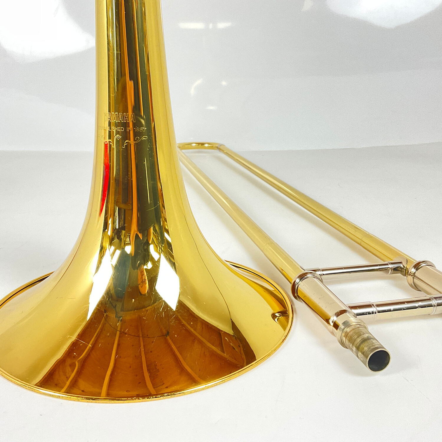 Used Yamaha YSL-630 Bb tenor trombone in lacquer finish. Features include a .525" bore handslide, and 8.5" yellow brass bell flare. Instrument is in very good condition apart from surface scratching, lacquer wear, and a few dings. Includes Yamaha case.