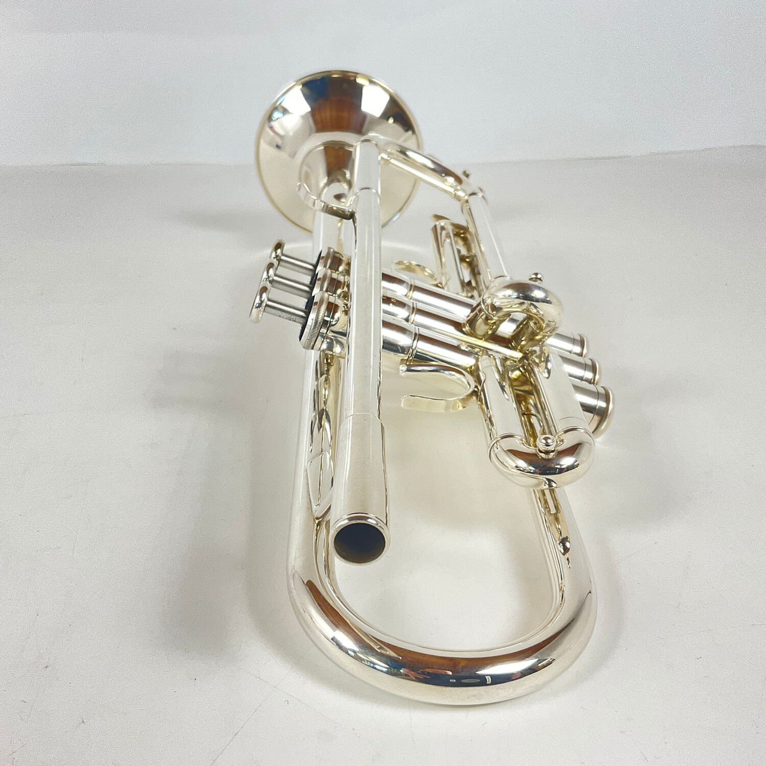 Used Yamaha YTR-850G Bb Trumpet in silver plate. Trumpet is in very good condition with minor surface scratching and a tiny ding on the 3rd valve. Includes case.